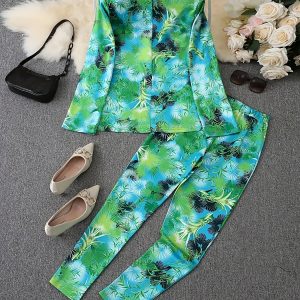 2pcs Women’S Dark Green Velvet-Like Texture Suit Set – Vintage-Inspired Wide-Leg Pants & Jacket with Structured Lapel Collar, Button Front Closure & Tailored Fit for Autumnu002FWinter Commuting, Formal Events & Professional Attire – Elegant Office to Se