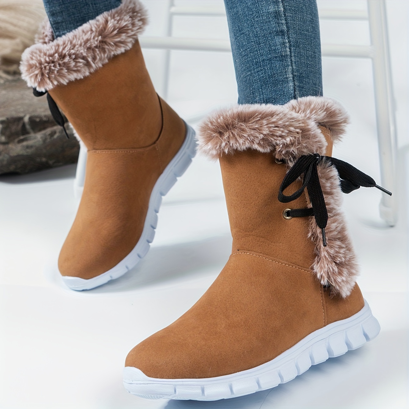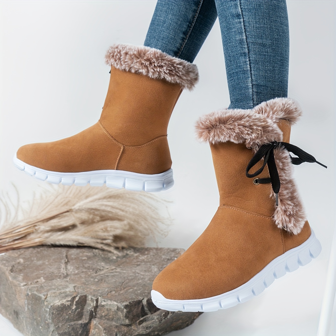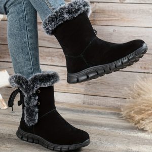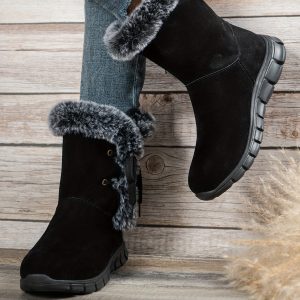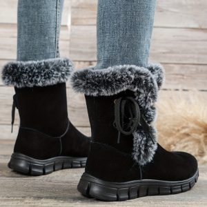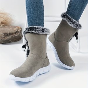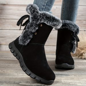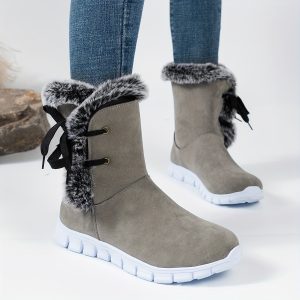 Be the first to review “1pr Winter Women’S Solid Color Ankle Booties – Lace-Up Fabric Upper, Low Platform Heel, Faux Sole, Warm Fleece-Lined Dress Boots with Anti-Skid Short Design” Cancel reply