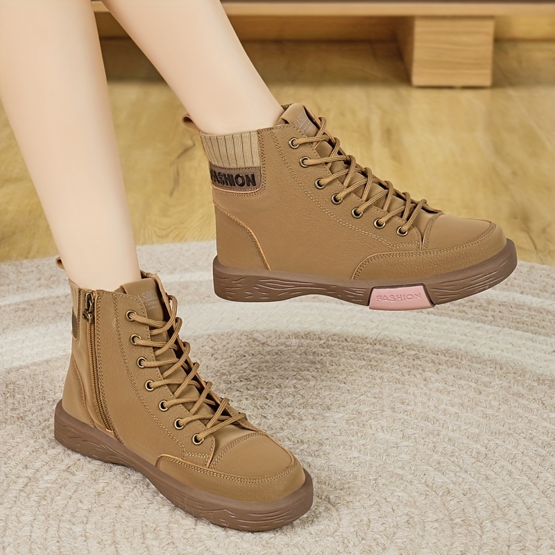 Anti-Slip High-Top Casual Shoes Women’S Fashion Ankle Boots – Solid Color PU Upper with Inner & Insole, TPR Sole, Round Toe, Side Zipper Closure, Flat Platform Heel, Hand Washable – Anti-Slip High-Top Casual Shoes