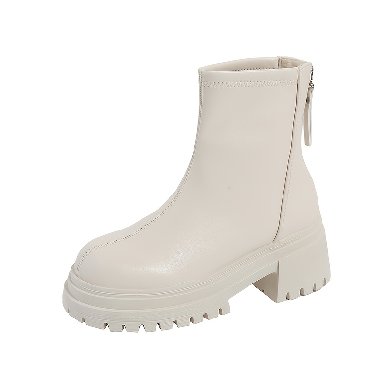 - British, Chunky Heel Boots Chunky Heel Women’s Boots | British-Inspired, Thick Sole, Faux Cover, Side Zipper, Cream & Black Options | Synthetic Cover, High Heel, Autumn, Winter
