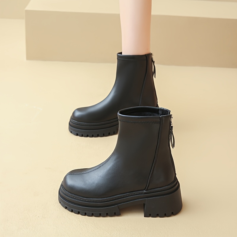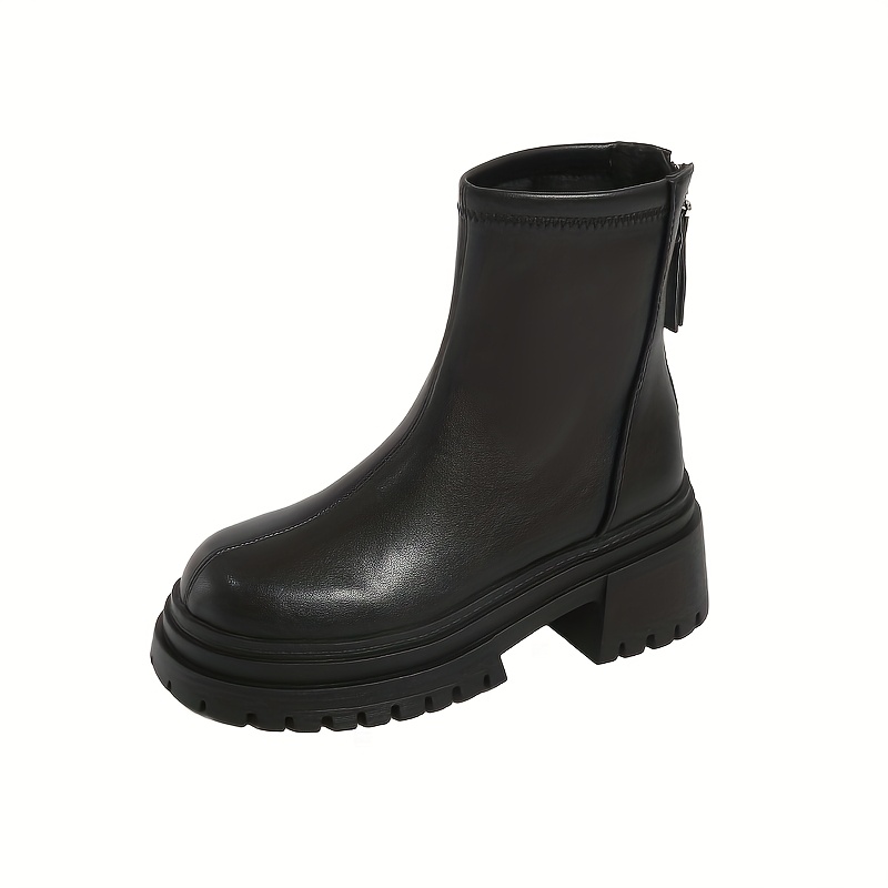 Women’s Chunky platform ankle boots – Slip-resistant TPR Sole, Zipper Closure, Cushioned Insole – Black boots for Everyday & Formal Outfits – PU Cover Shoes