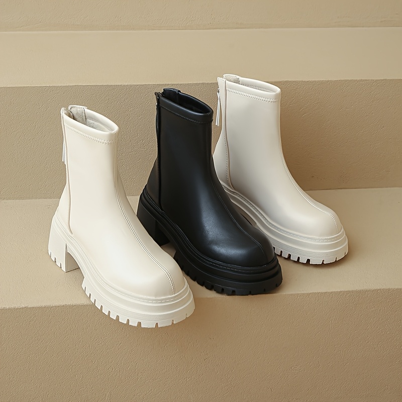 British, Chunky Heel Boots Chunky Heel Women’s Boots | British-Inspired, Thick Sole, Faux Cover, Side Zipper, Cream & Black Options | Synthetic Cover, High Heel, Autumn, Winter