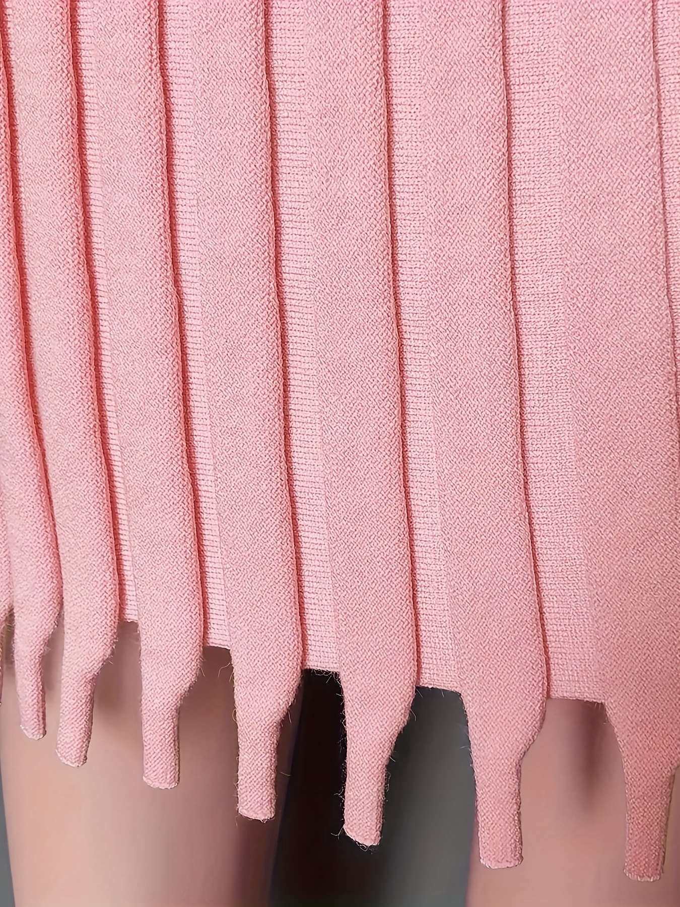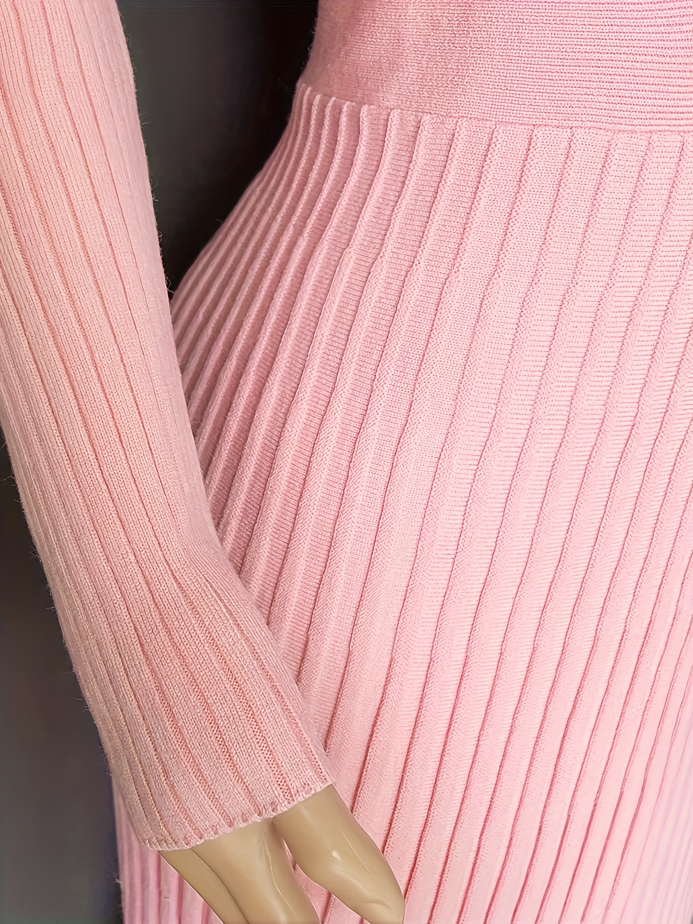 - Elegant Midi Dress Long Sleeveless Pleated Midi Dress for Women | Ribbed, Solid Color, High-Low Hemline, Perfect for Fallu002FWinter – Available in Pink or Any Color, Autumn Clothing