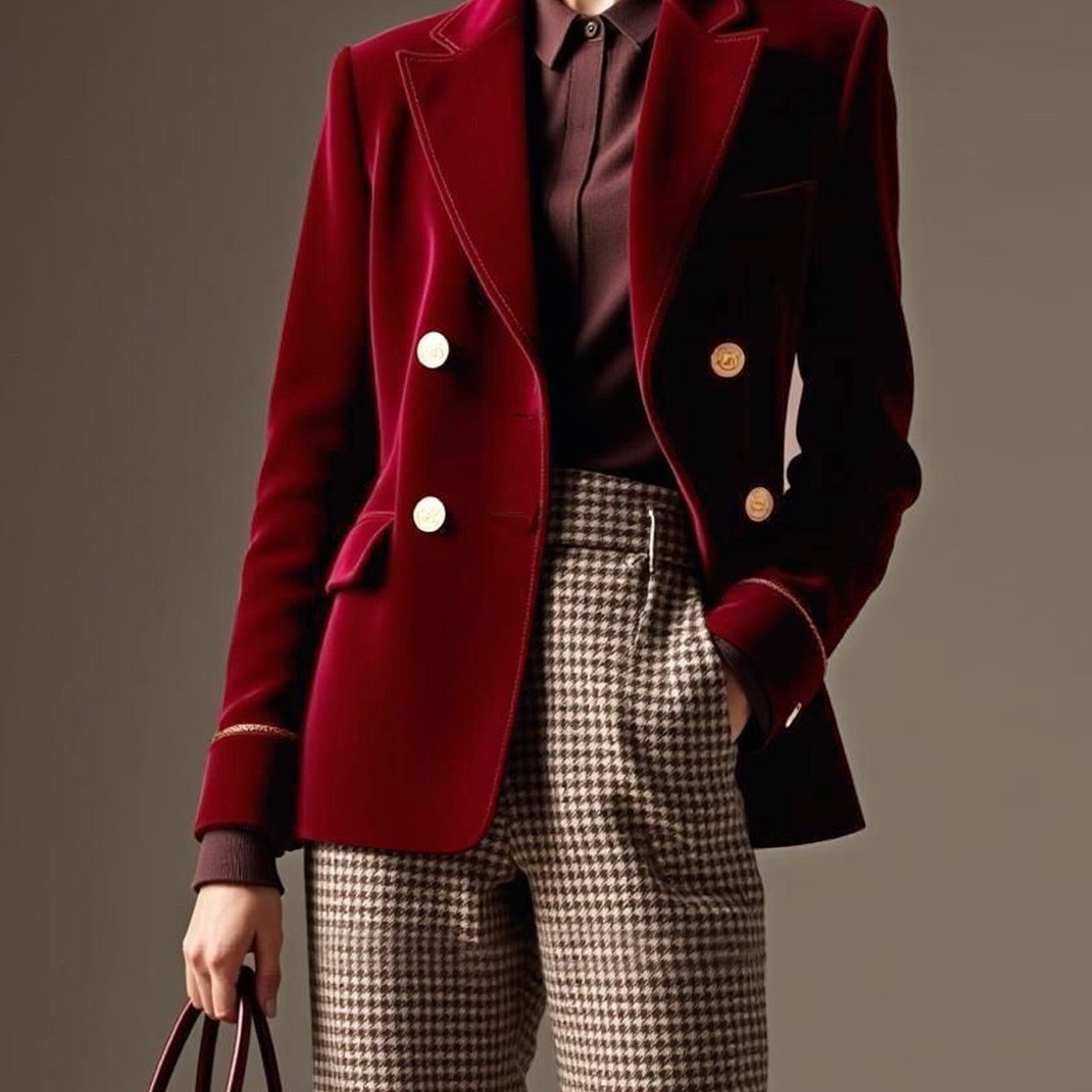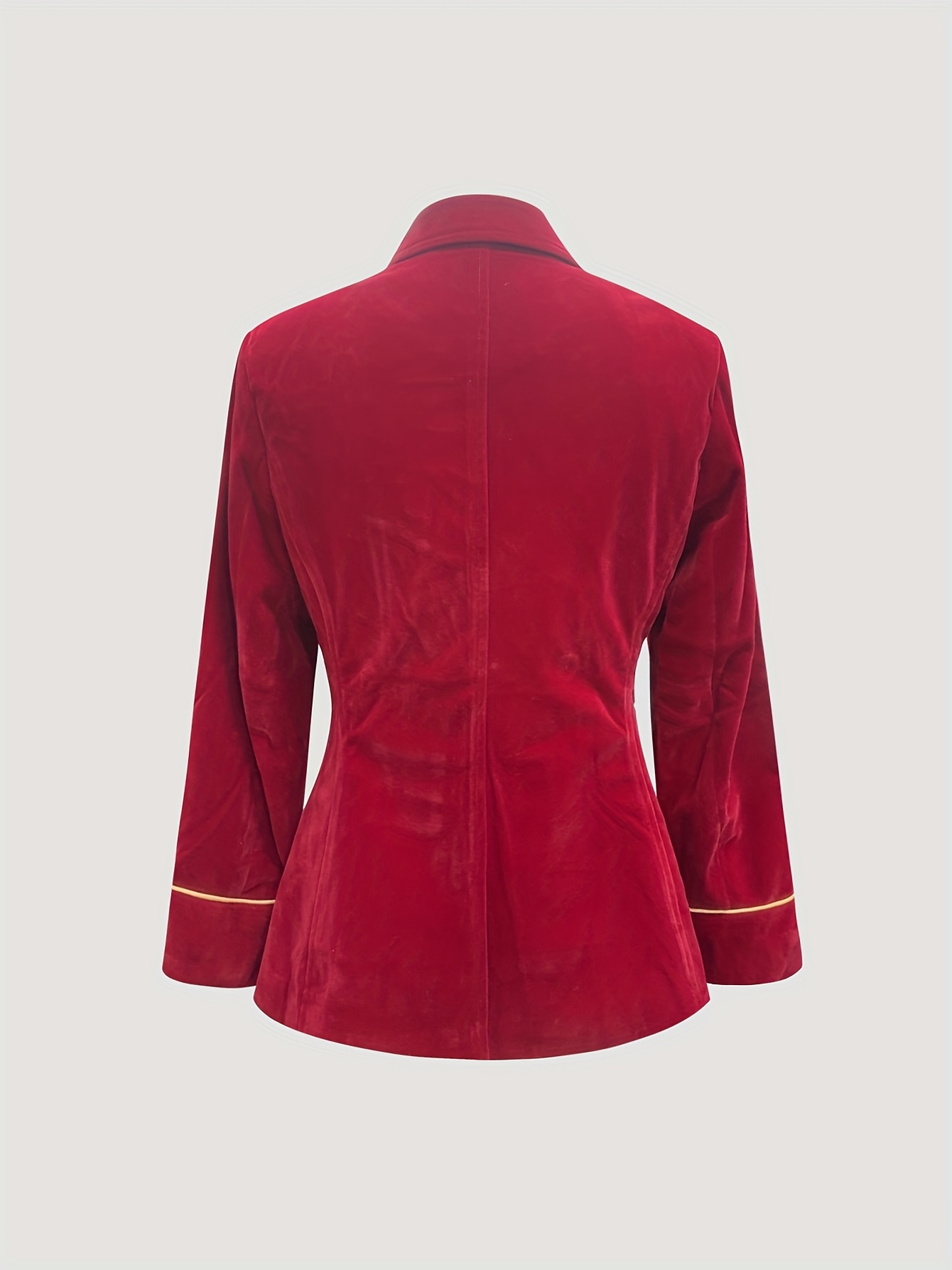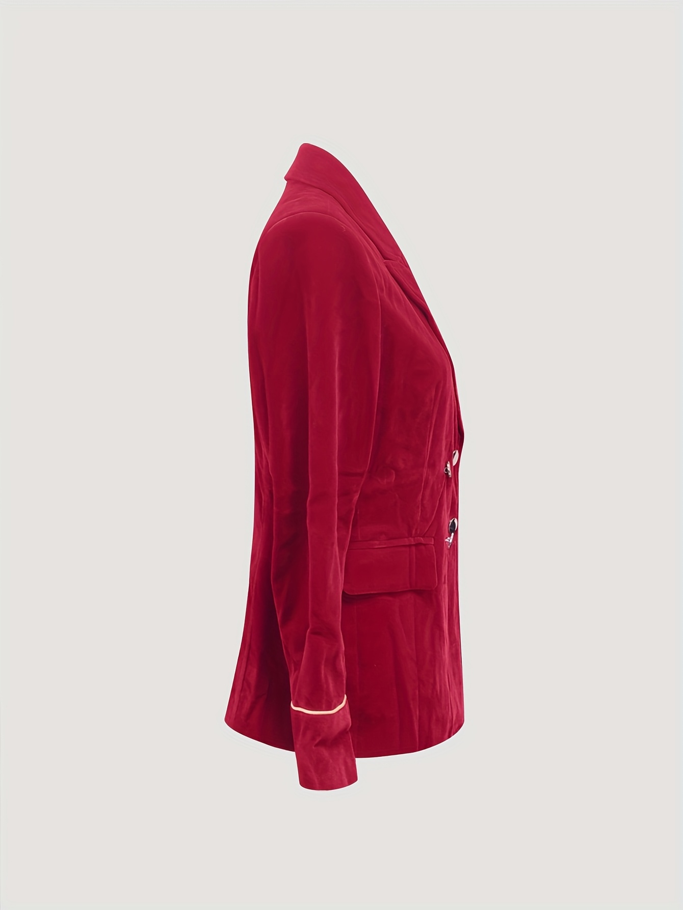 Elegant Urban Commuter Office High-Quality Burgundy and Golden Button Decor Long Sleeve Blazer Jacket for Christmas, Valentine’s Day, Parties, Business Offices, Office Wear Outfits for Women, Business Attire, Party Outfit, Elegant Blazer, Classic Design, Tailored Fit, Durable Material, Formal Jacket, Doublebreasted Jacket, Professional Women, Fashion Enthusiasts
