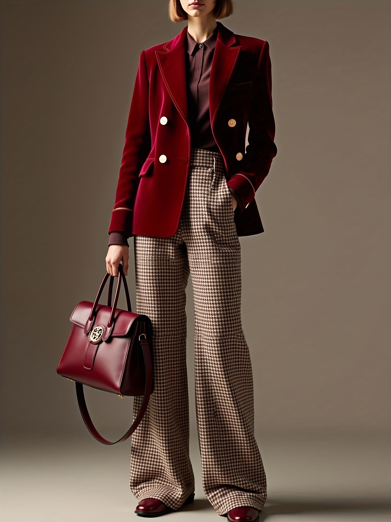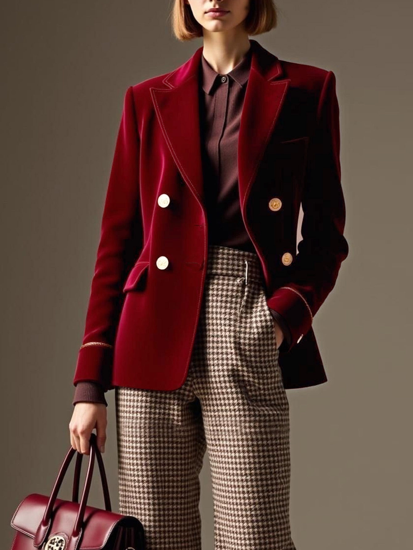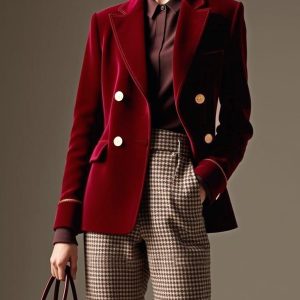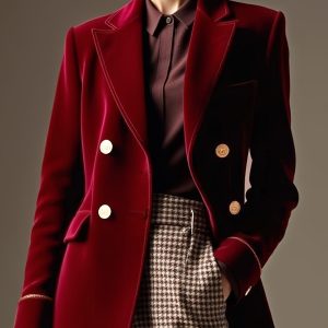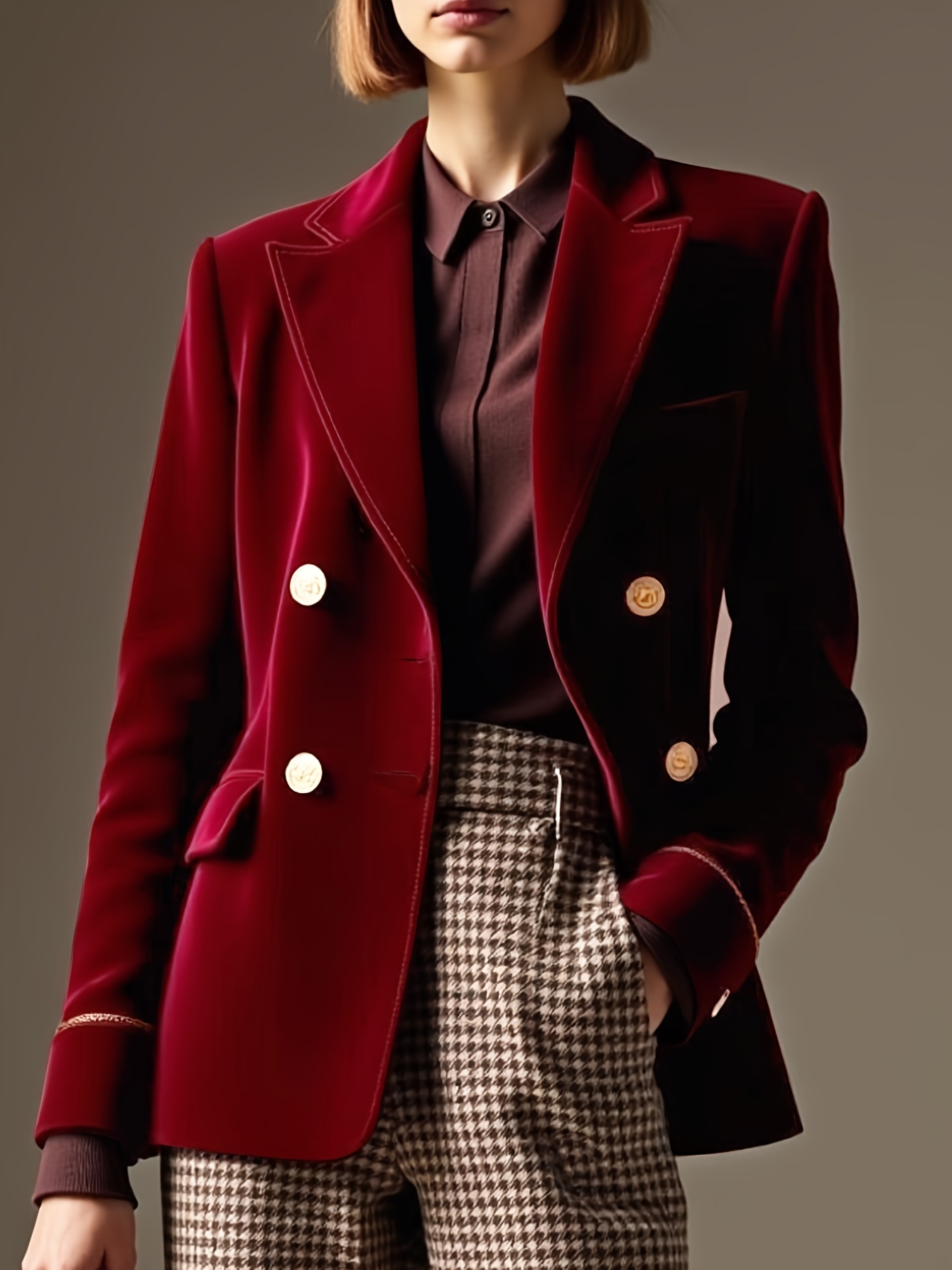 Elegant Urban Commuter Office High-Quality Burgundy and Golden Button Decor Long Sleeve Blazer Jacket for Christmas, Valentine’s Day, Parties, Business Offices, Office Wear Outfits for Women, Business Attire, Party Outfit, Elegant Blazer, Classic Design, Tailored Fit, Durable Material, Formal Jacket, Doublebreasted Jacket, Professional Women, Fashion Enthusiasts