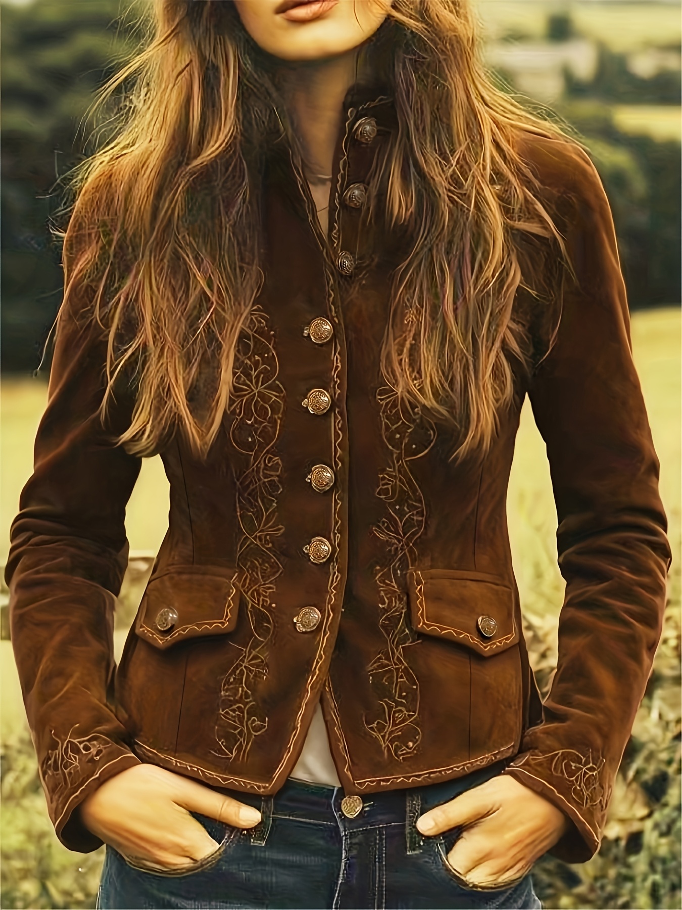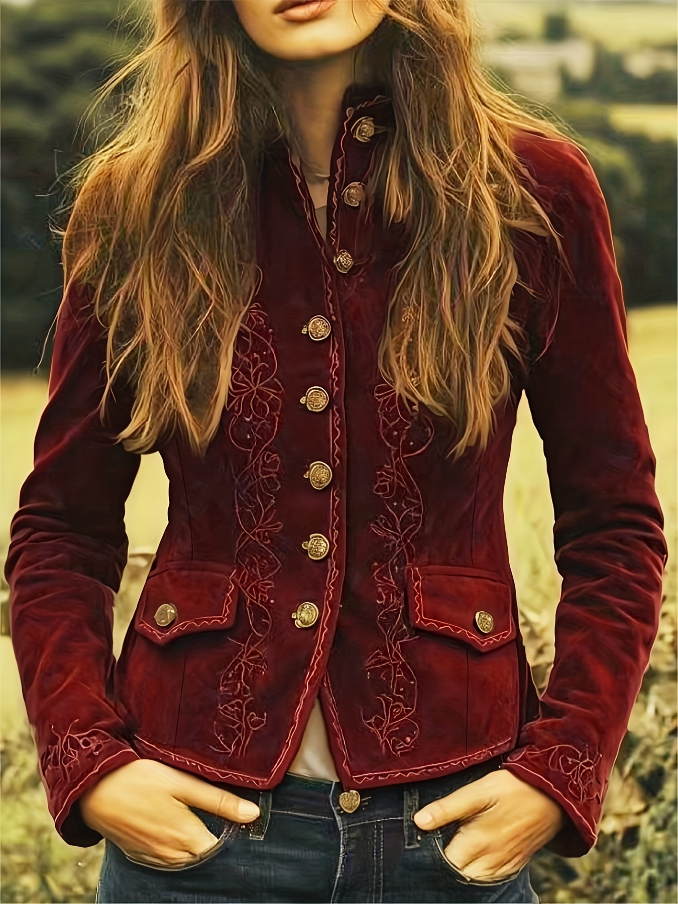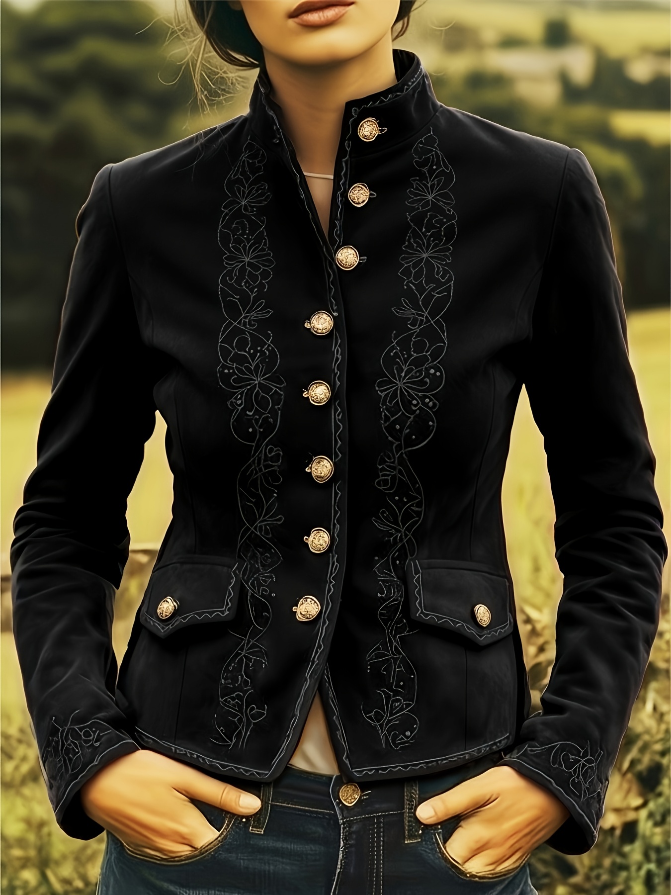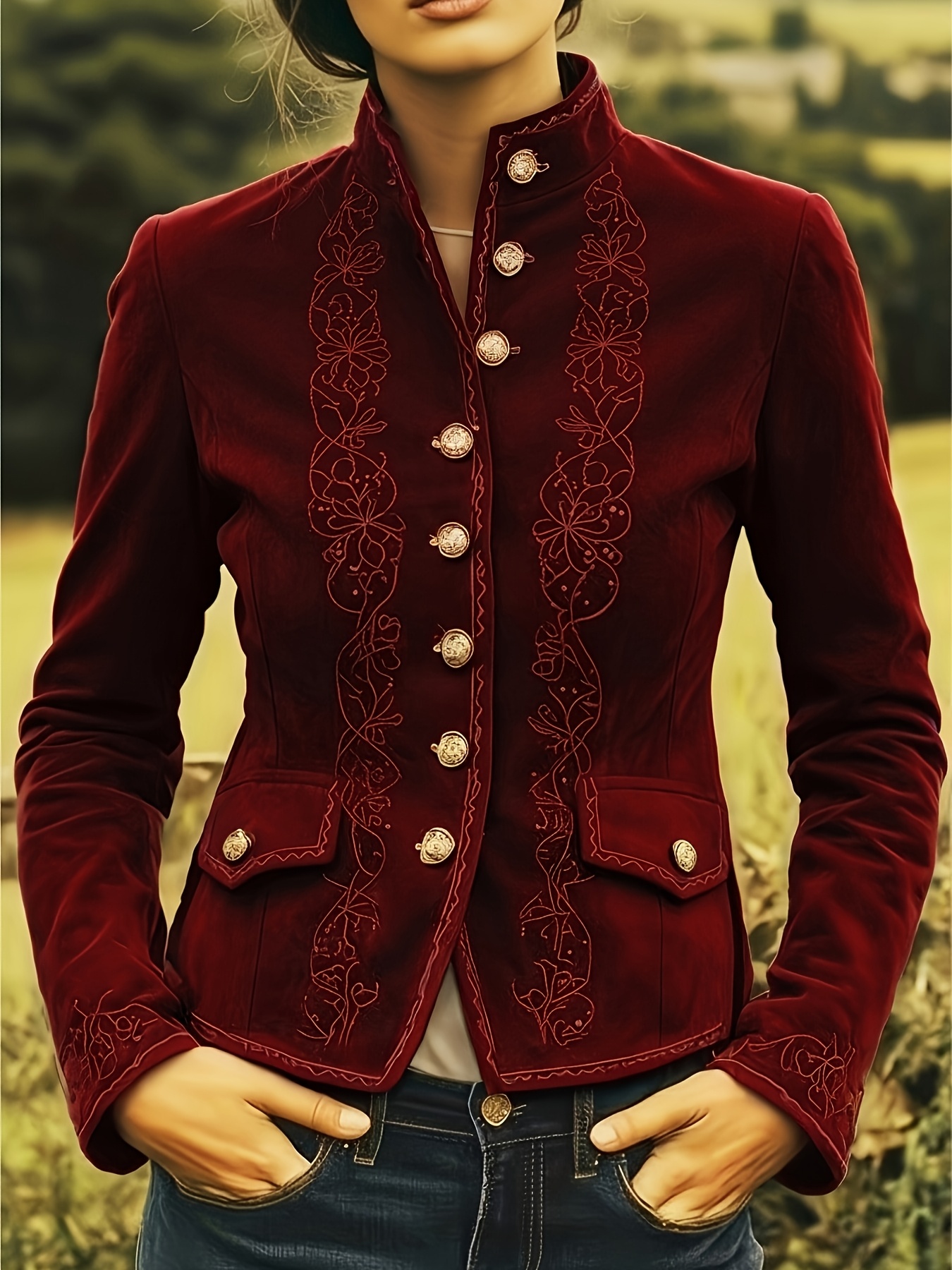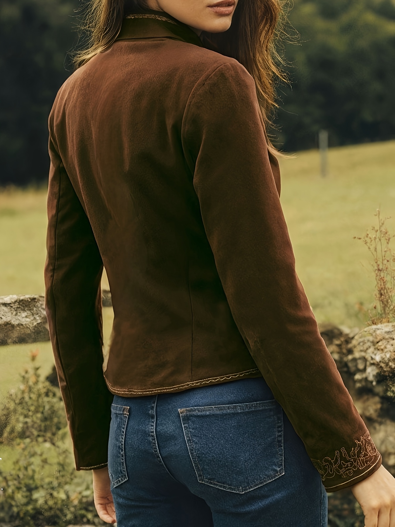 Vintage 2025 American Court-Inspired Short Jacket – Elegant Short-Length X-Shape Tailored Blazer with Collar & Single-Breasted Button Front, Machine Washable Retro Coat for Fall, Weddings, Parties & Office (No Belt)