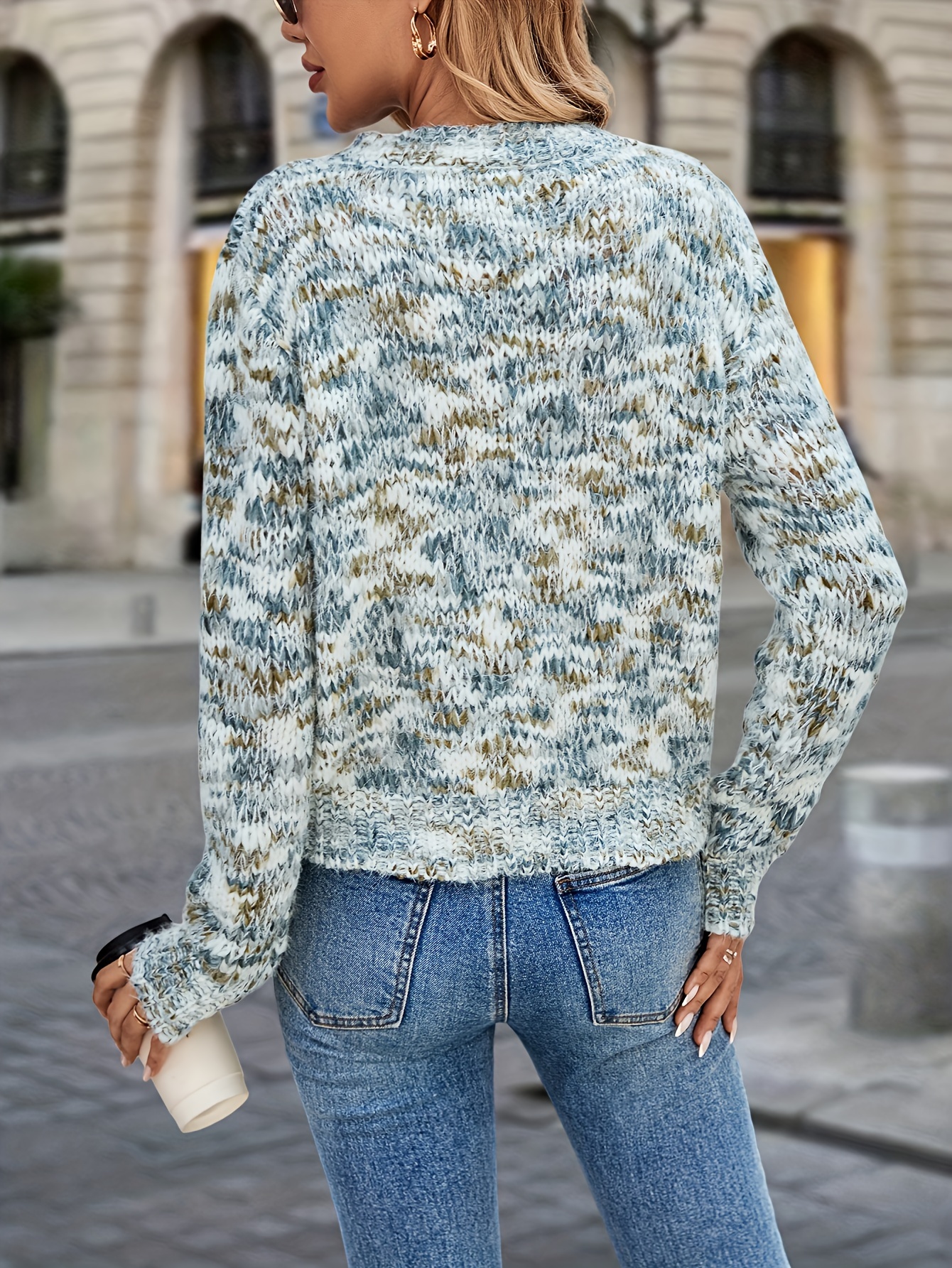 Women’s Autumn Winter Sweater – Middle Eastern-Inspired Gradient Color Block Design, Soft Round Neck Long Sleeve Pullover, Elegant Casual Chic Top for Versatile Outfits, Sweater