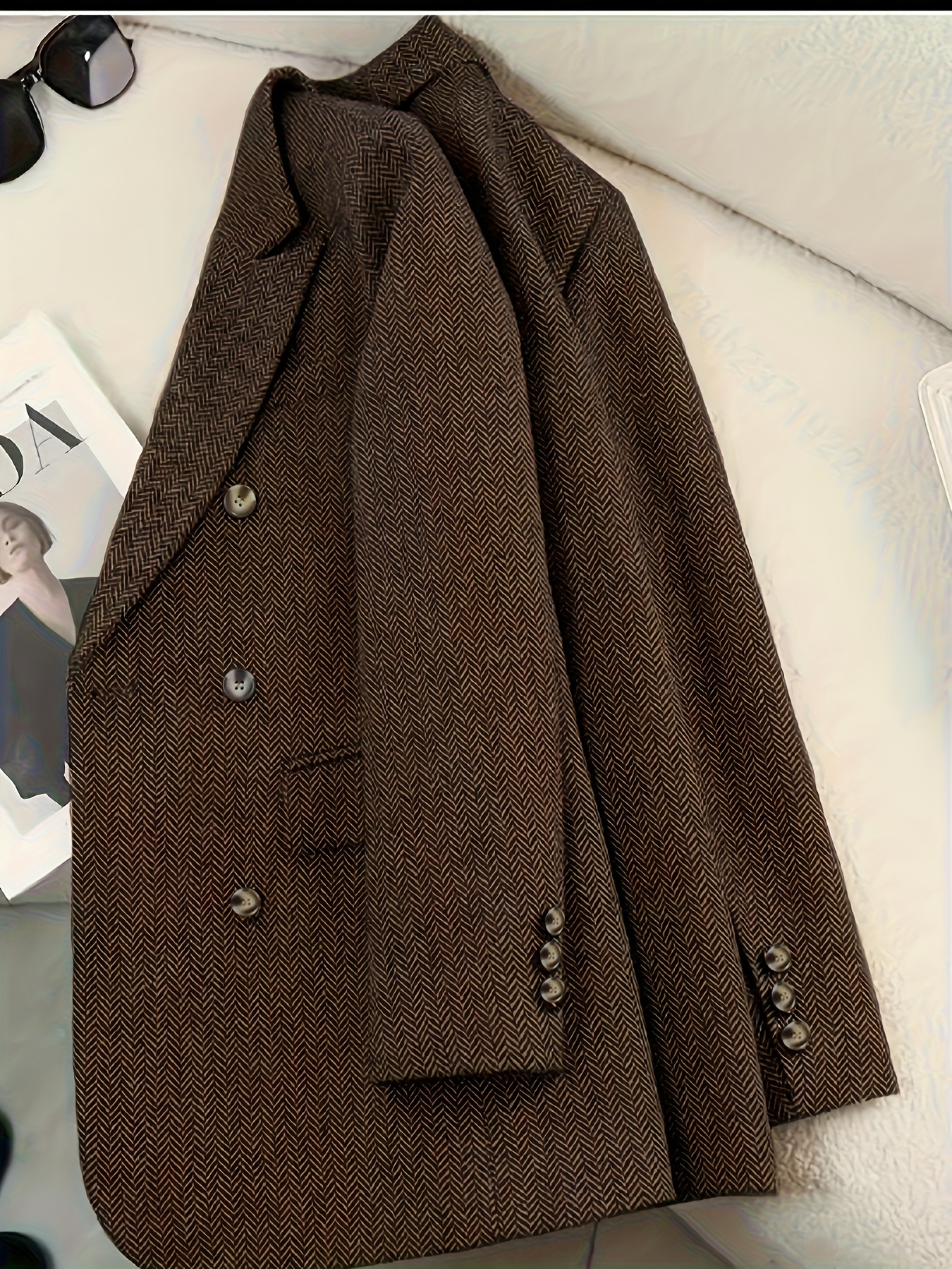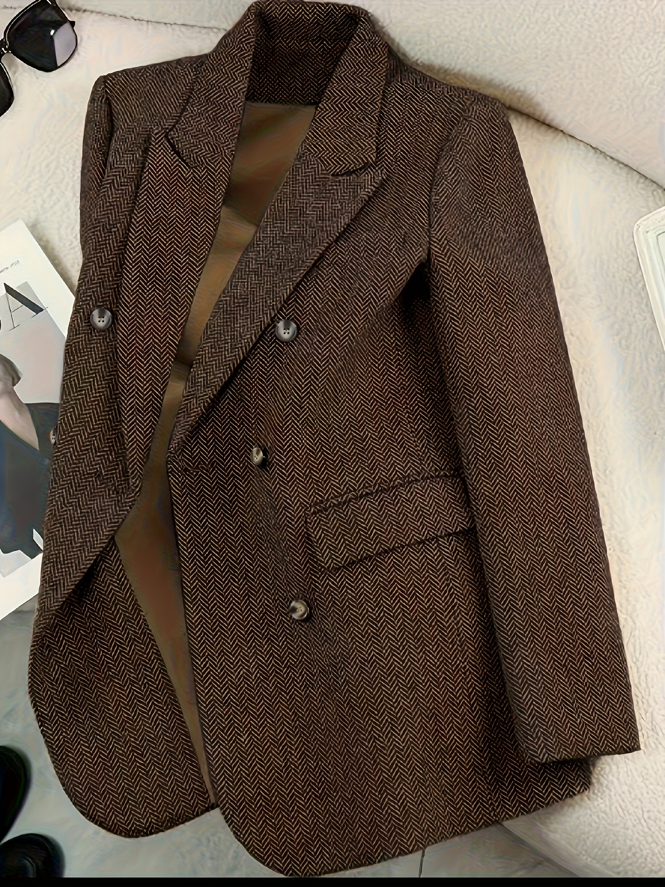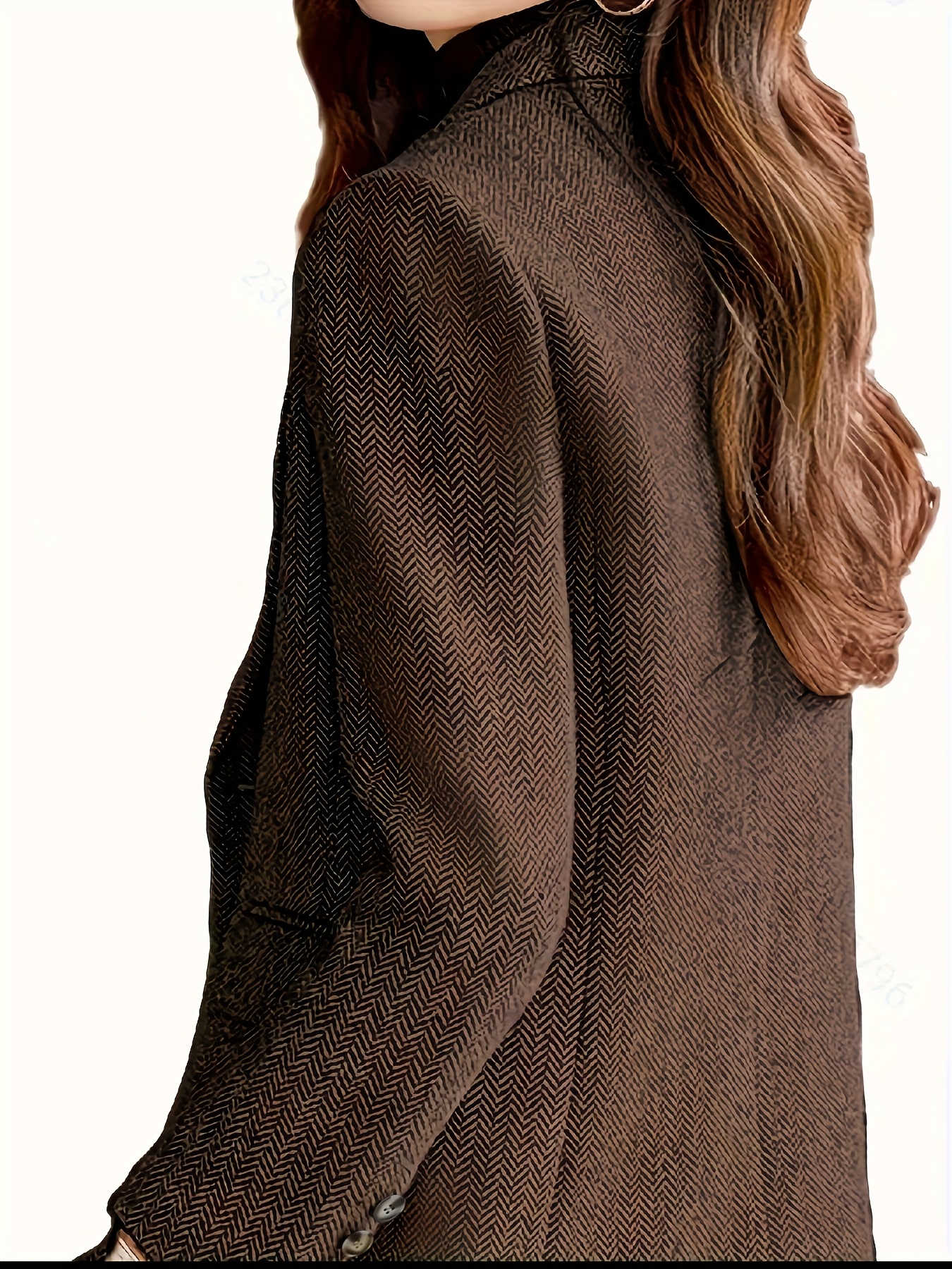 Women’s Casual Blazer Jacket, Brown Tweed-like Single-Breasted Lapel Collar Structured Loose-Fit Tailored Coat, Machine Washable, for Professional & Semi-Formal Wear, Springu002FFall Outerwear, Office & Business Attire, No Belt