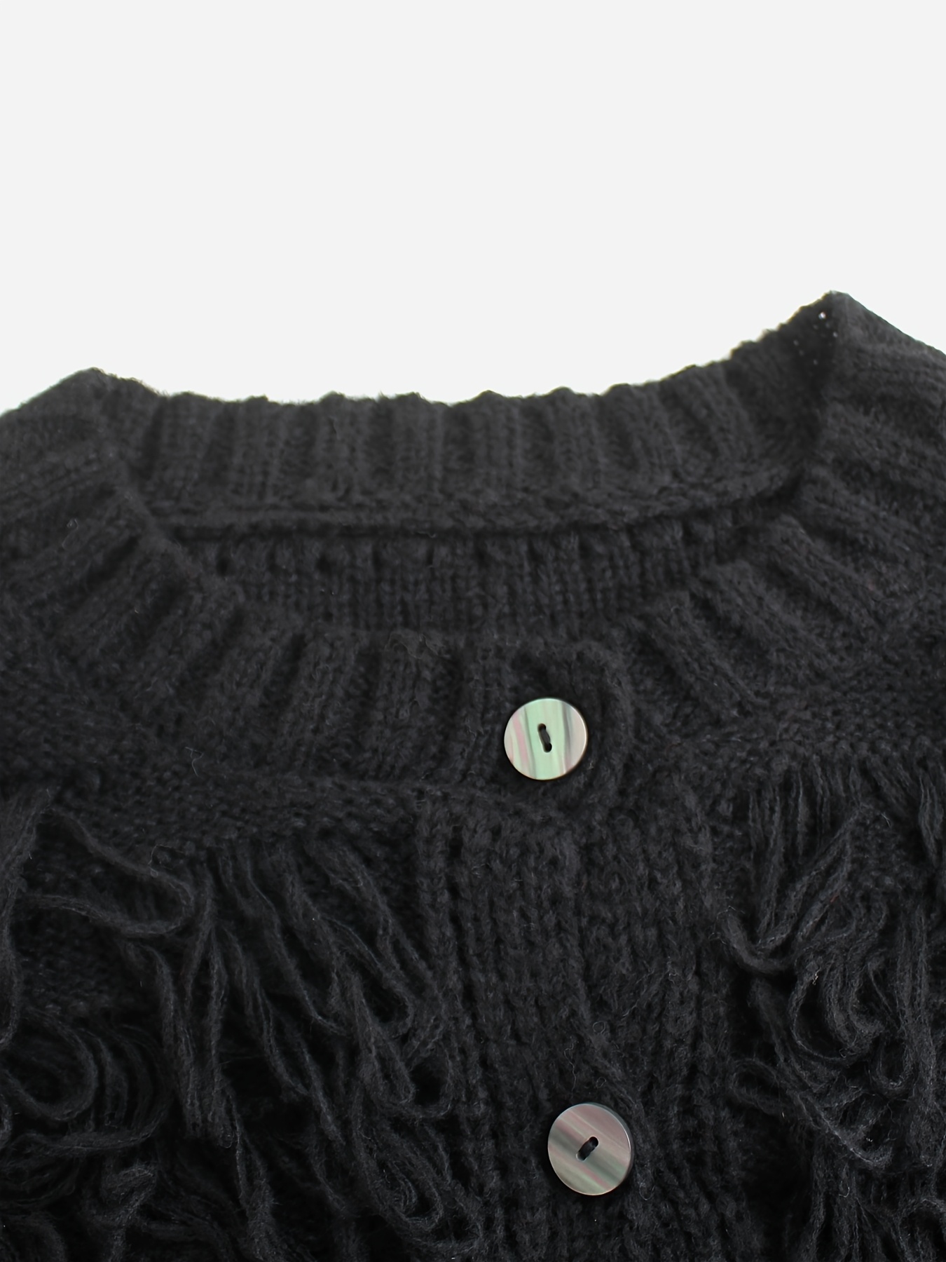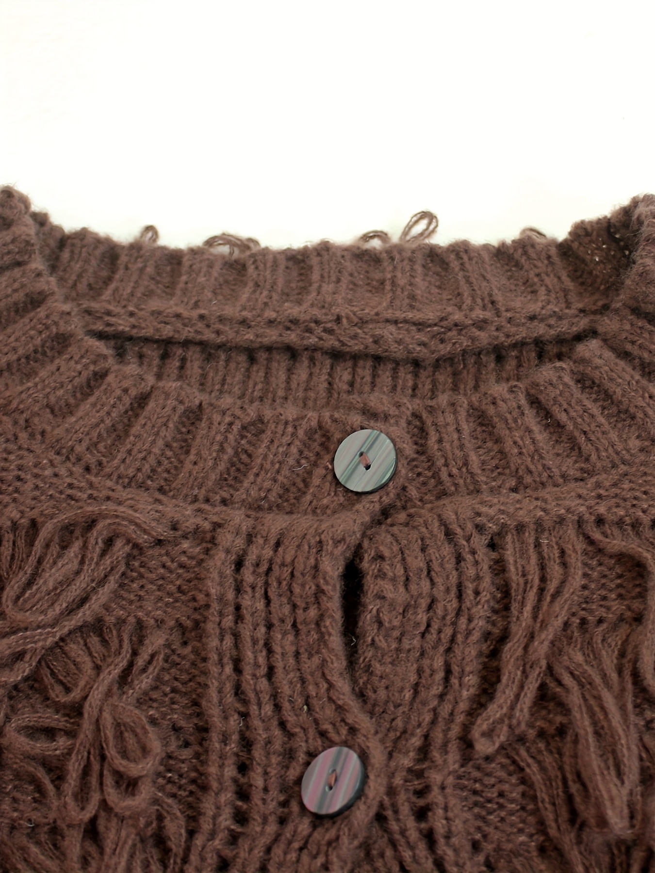 Women’s Casual Cardigan with Button Front, Fringe Details & Ribbed Cuffs – Soft Round Neck Sweater for Fall Winter, Medium Stretch, Hand Washu002FDry Clean, Sweater, Cozy Clothing, Textured Knitwear