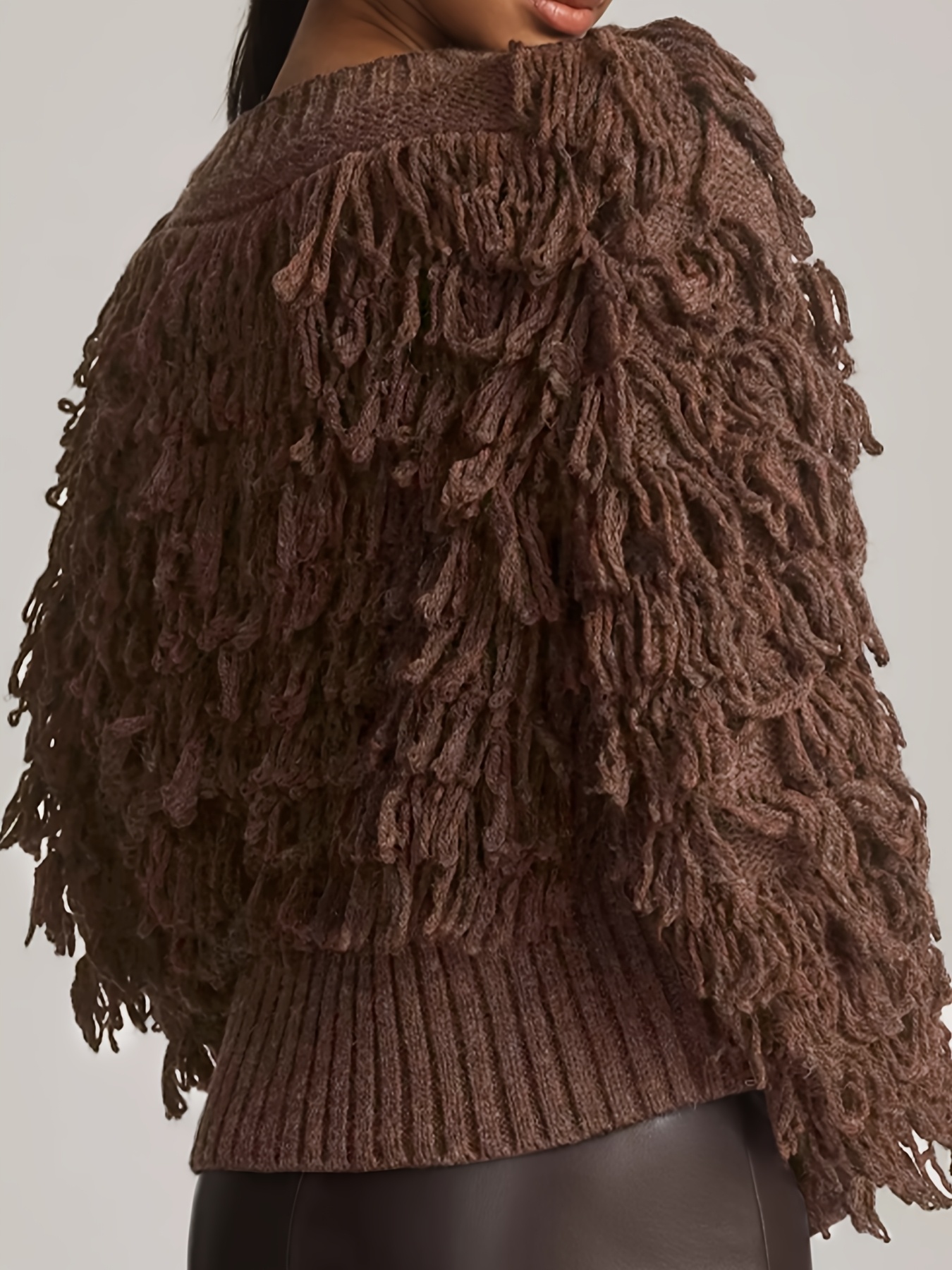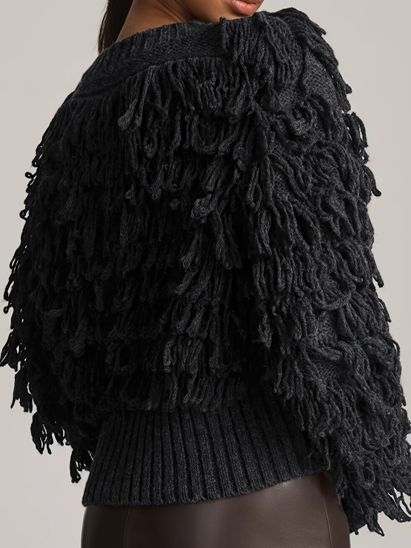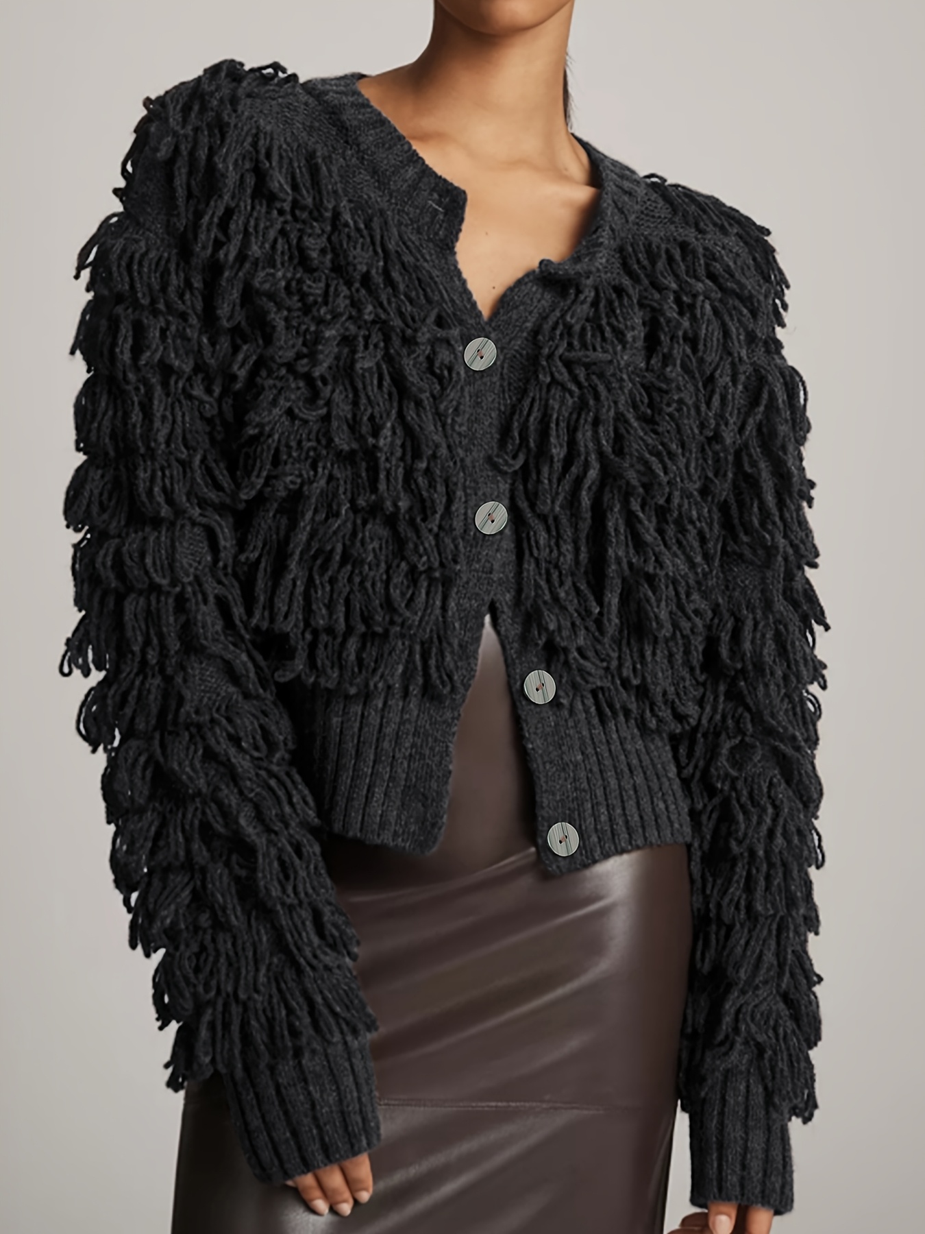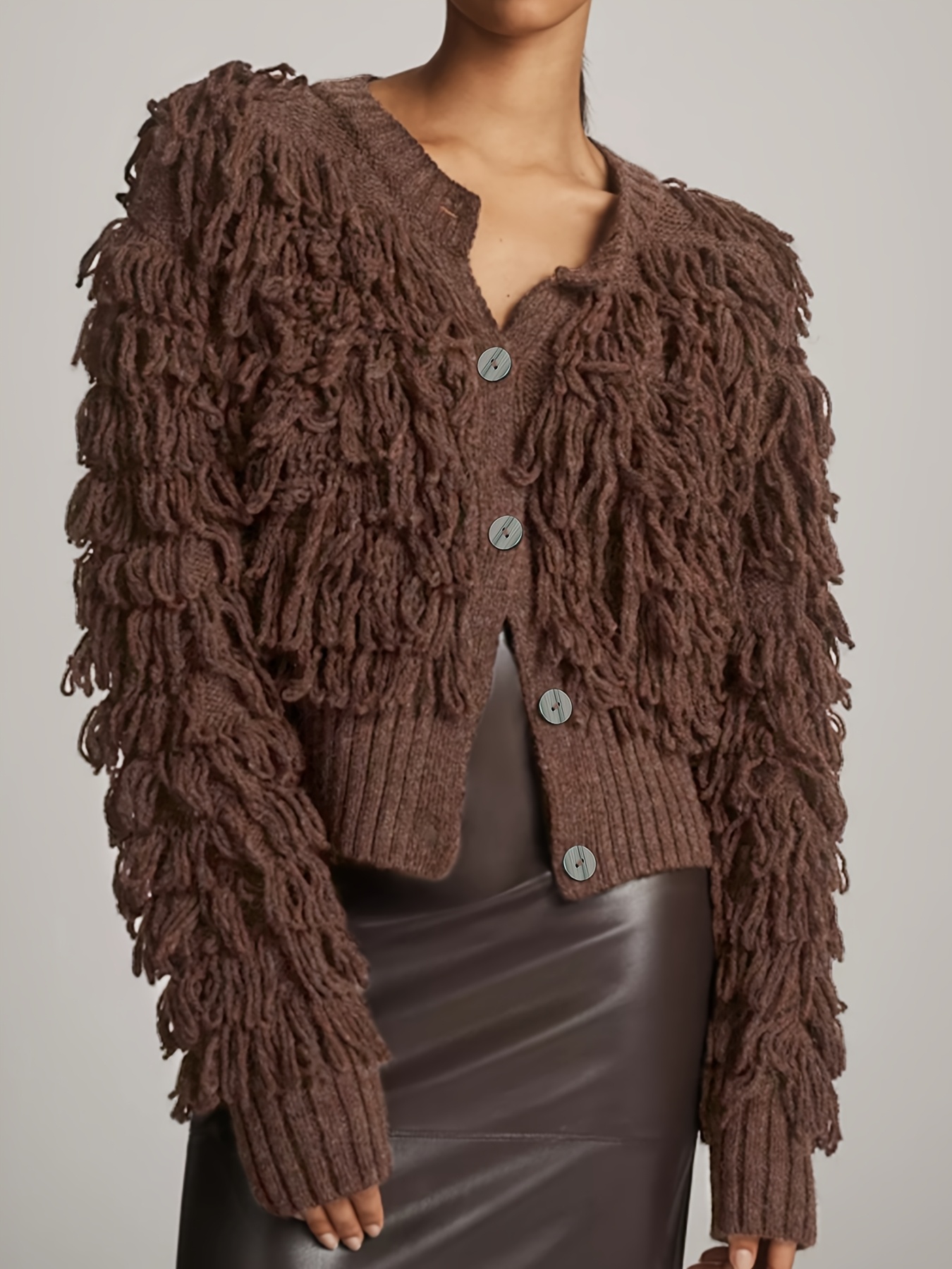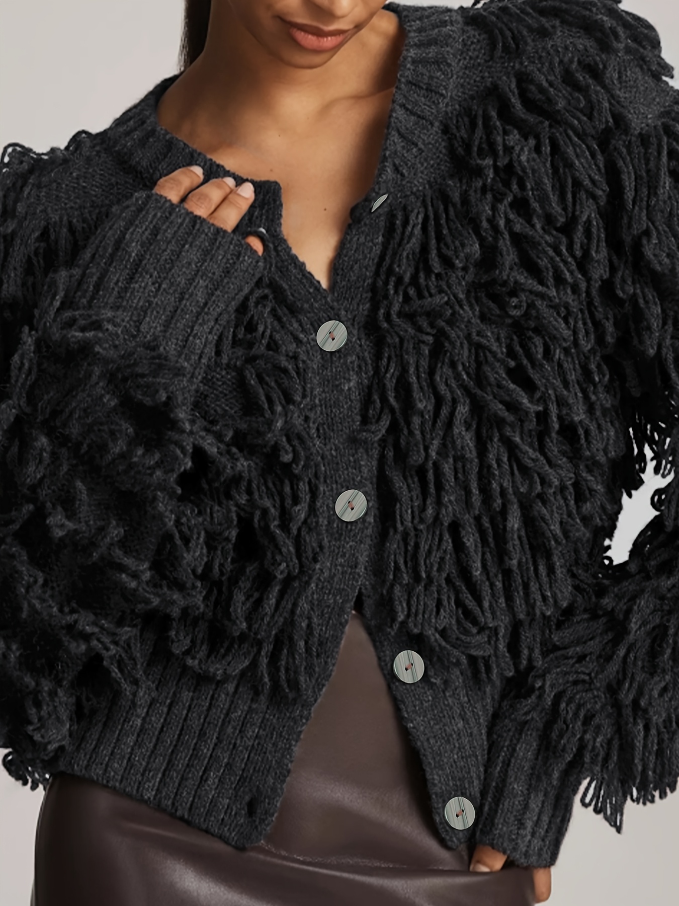 - Women’s Casual Cardigan with Button Front, Fringe Details & Ribbed Cuffs – Soft Round Neck Sweater for Fall Winter, Medium Stretch, Hand Washu002FDry Clean, Sweater, Cozy Clothing, Textured Knitwear