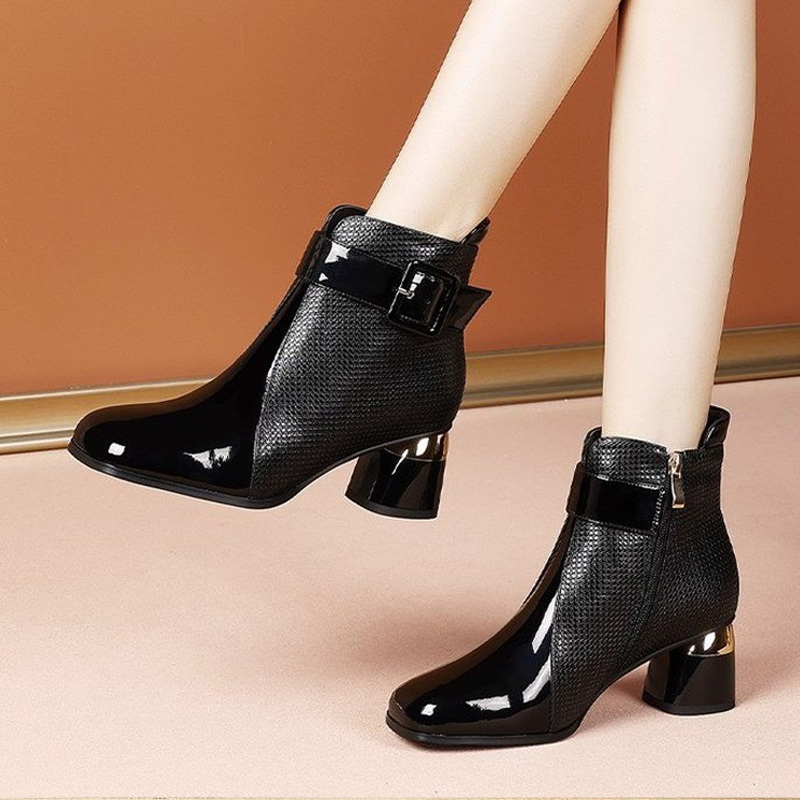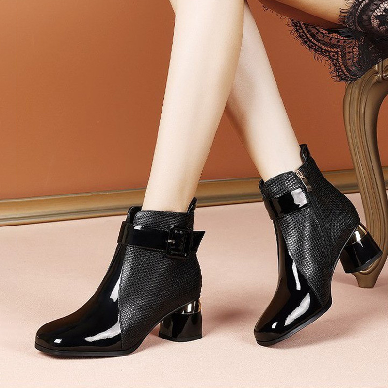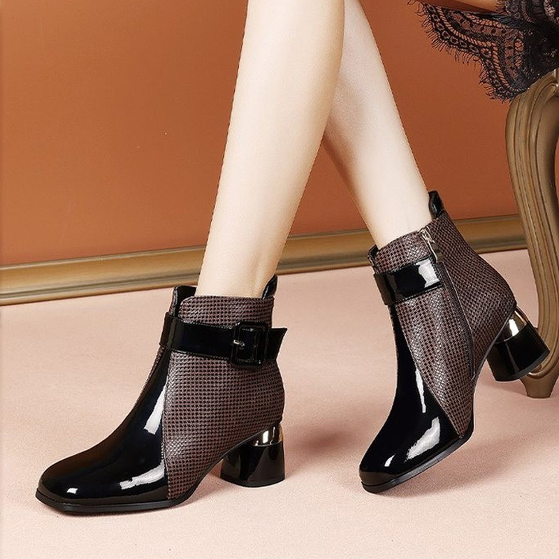 - Women’S Chunky Heel Ankle Boots – Square Toe PU Cover with Side Zipper & Buckle Strap, Faux Cover Casual Chelsea Boots for Casual Attire, High Heel Boots, Stylish Footwear, Durable Rubber Sole