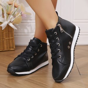Be the first to review “Women’S Classic Black High-Top Ankle Boots – Comfortable, Stylish British Design with Zipper Detail, Round Toe, Durable Breathable Fabric Lining, TPR Sole, All-Season Casual Footwear” Cancel reply