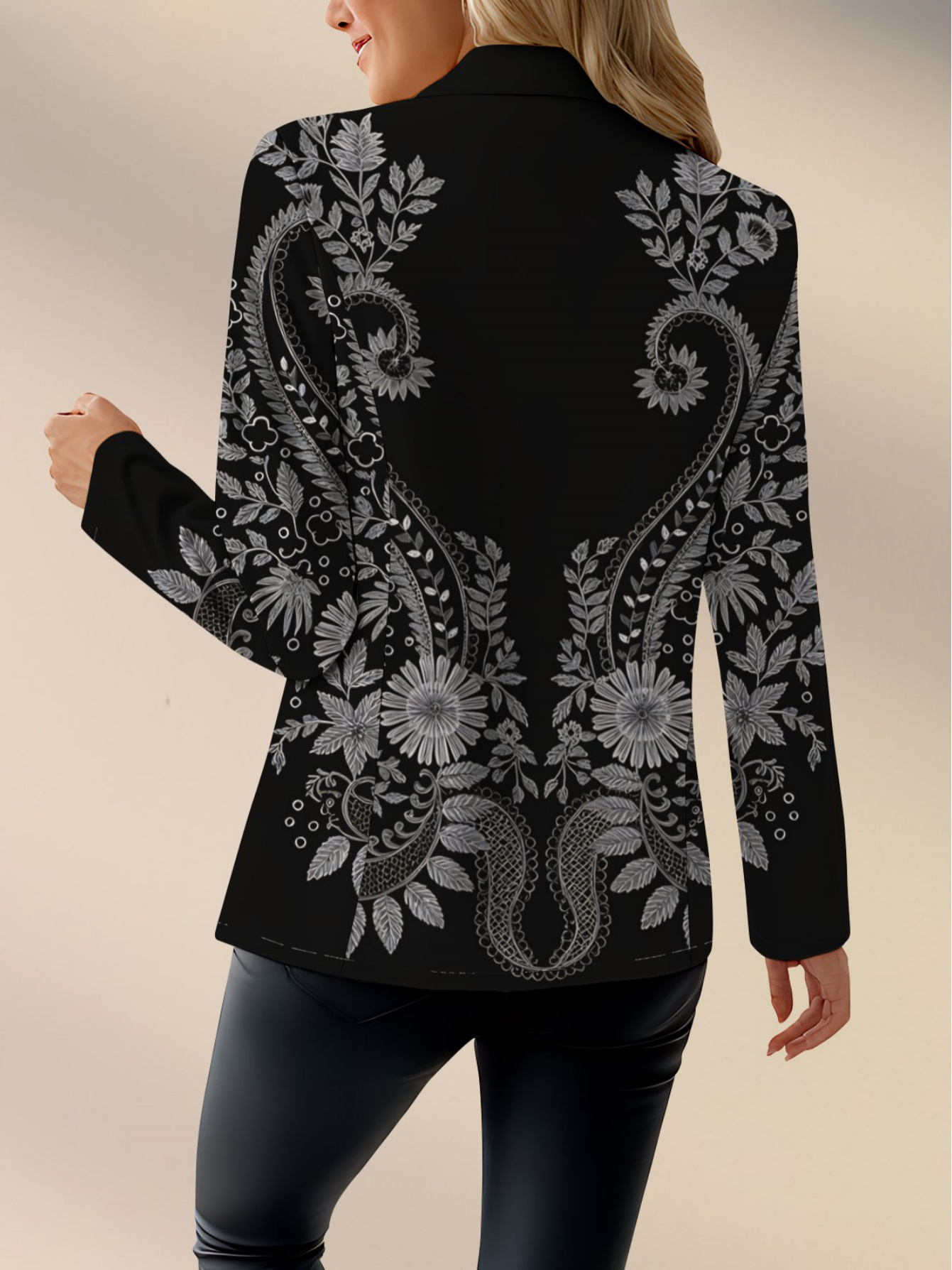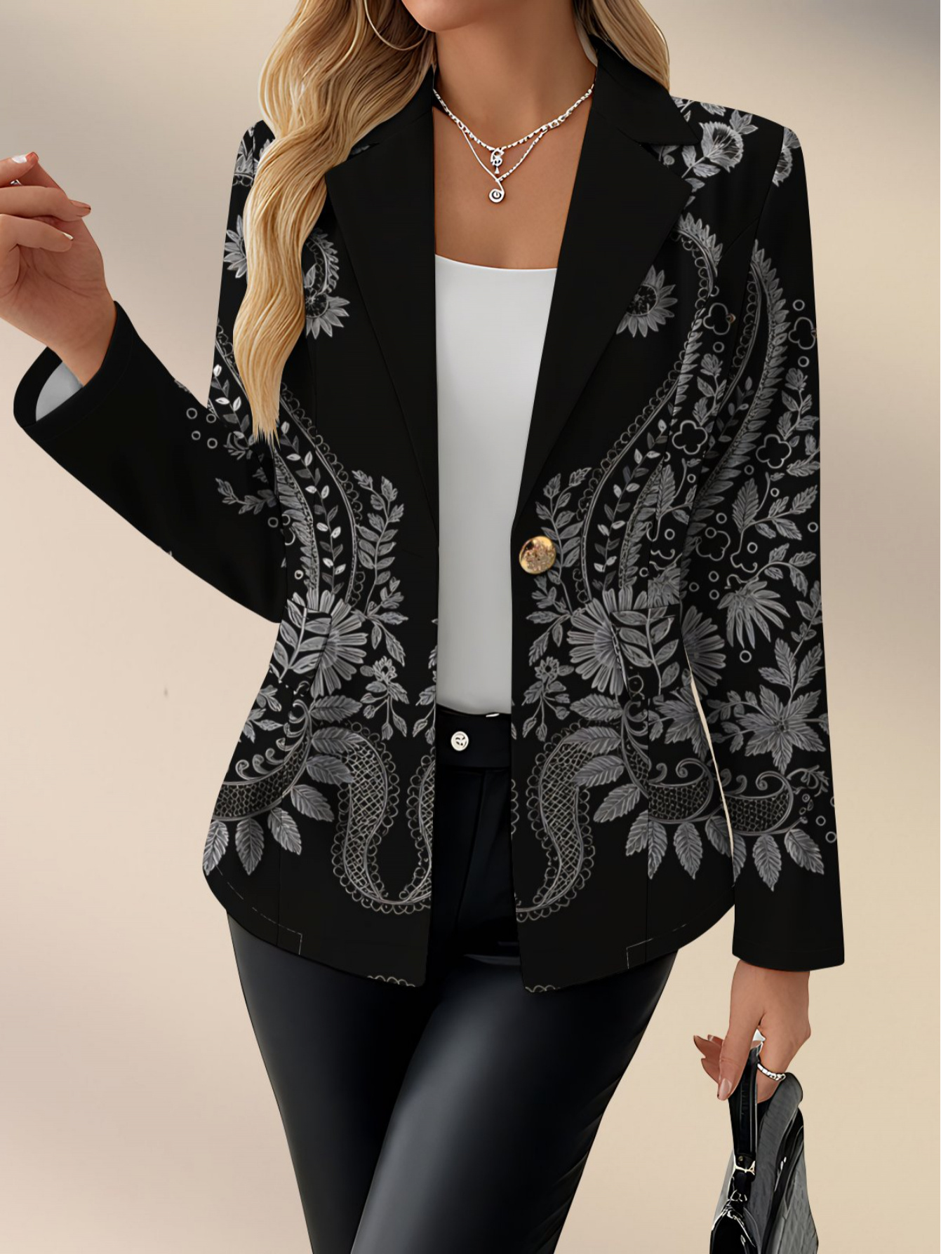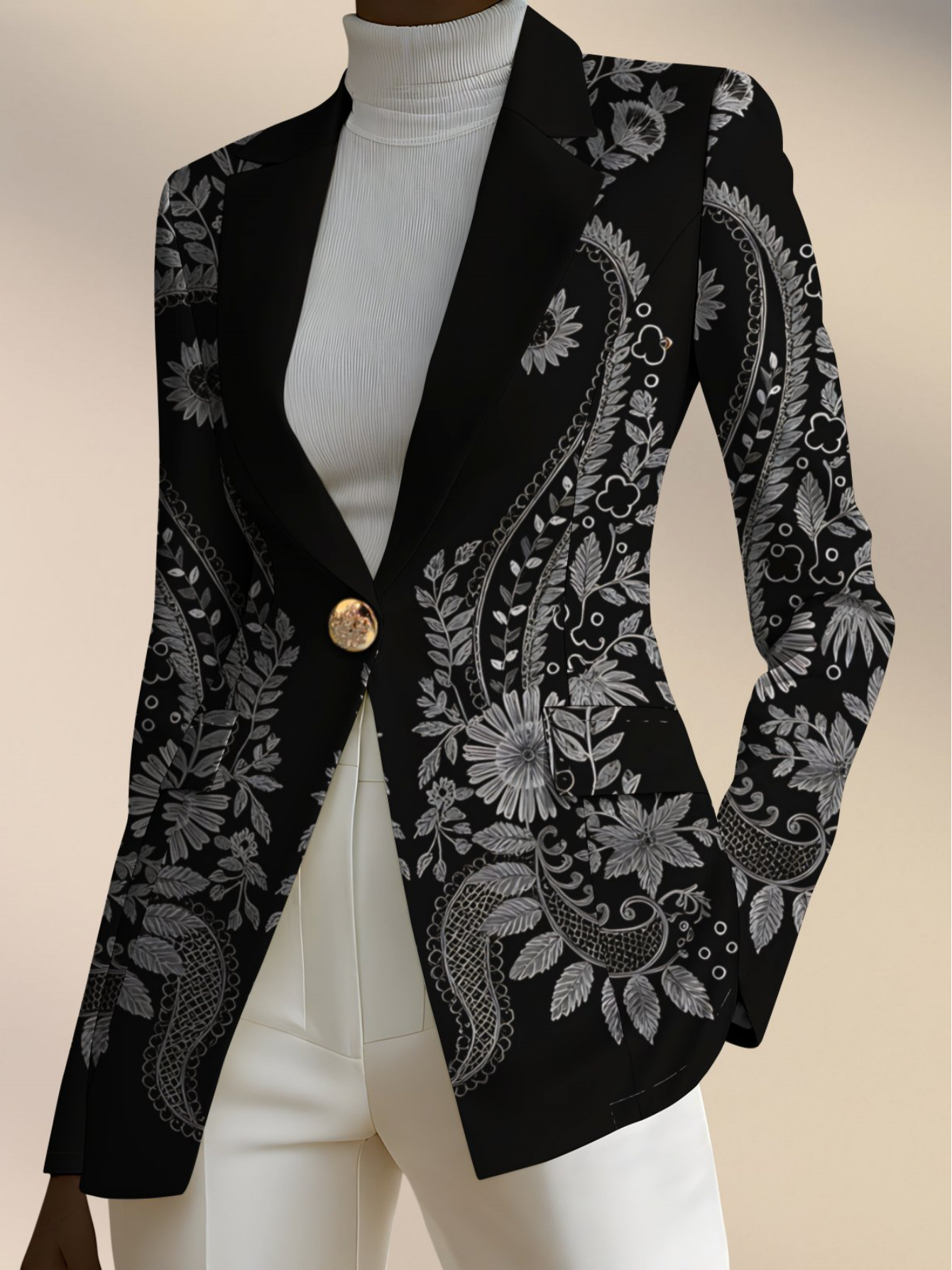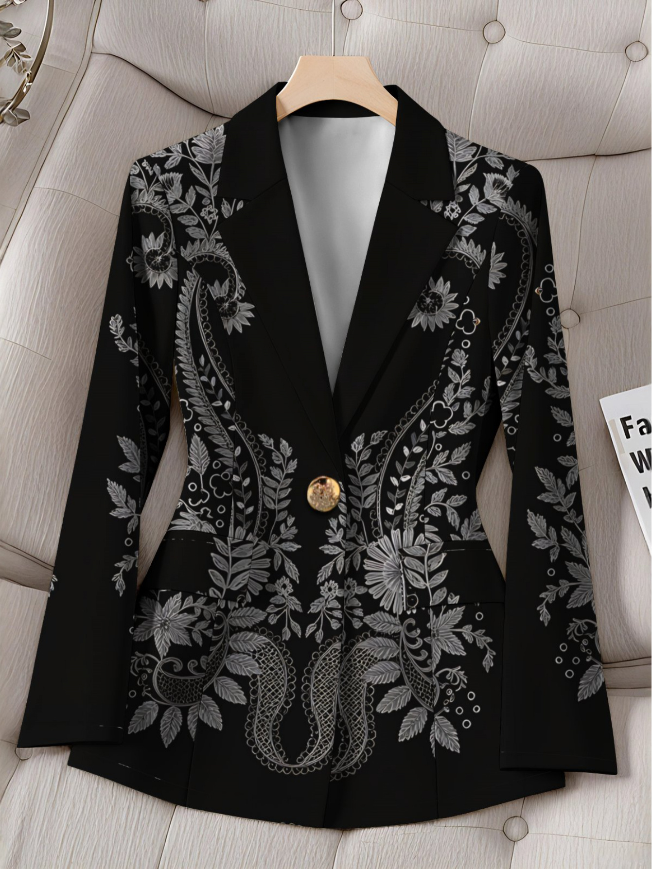 Women’s Elegant Floral Print Blazer, Long Sleeve Button-Up Jacket with X-Line Silhouette & Geometric Pattern, Fallu002FWinter Outerwear for Office, Parties, Casual Events, Women’s Fashion Coat