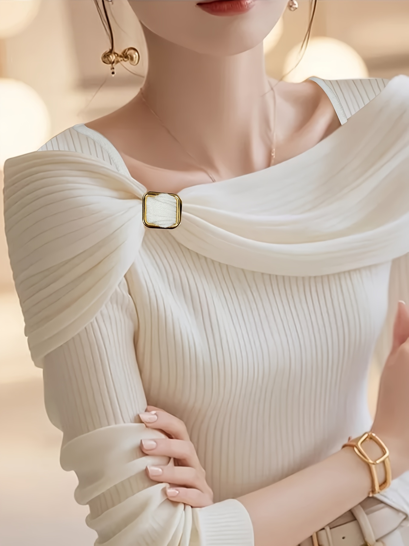 - Women’s Elegant French Chic Sweater – Soft White Pullover for Everyday & Formal Events, Machine Washable Non-Transparent Top, Office, Party, or Casual Outfits – Women’s Fashion Sweater, Cute Sweaters, Versatile Clothing, Sophisticated Style, Comfortable Wear