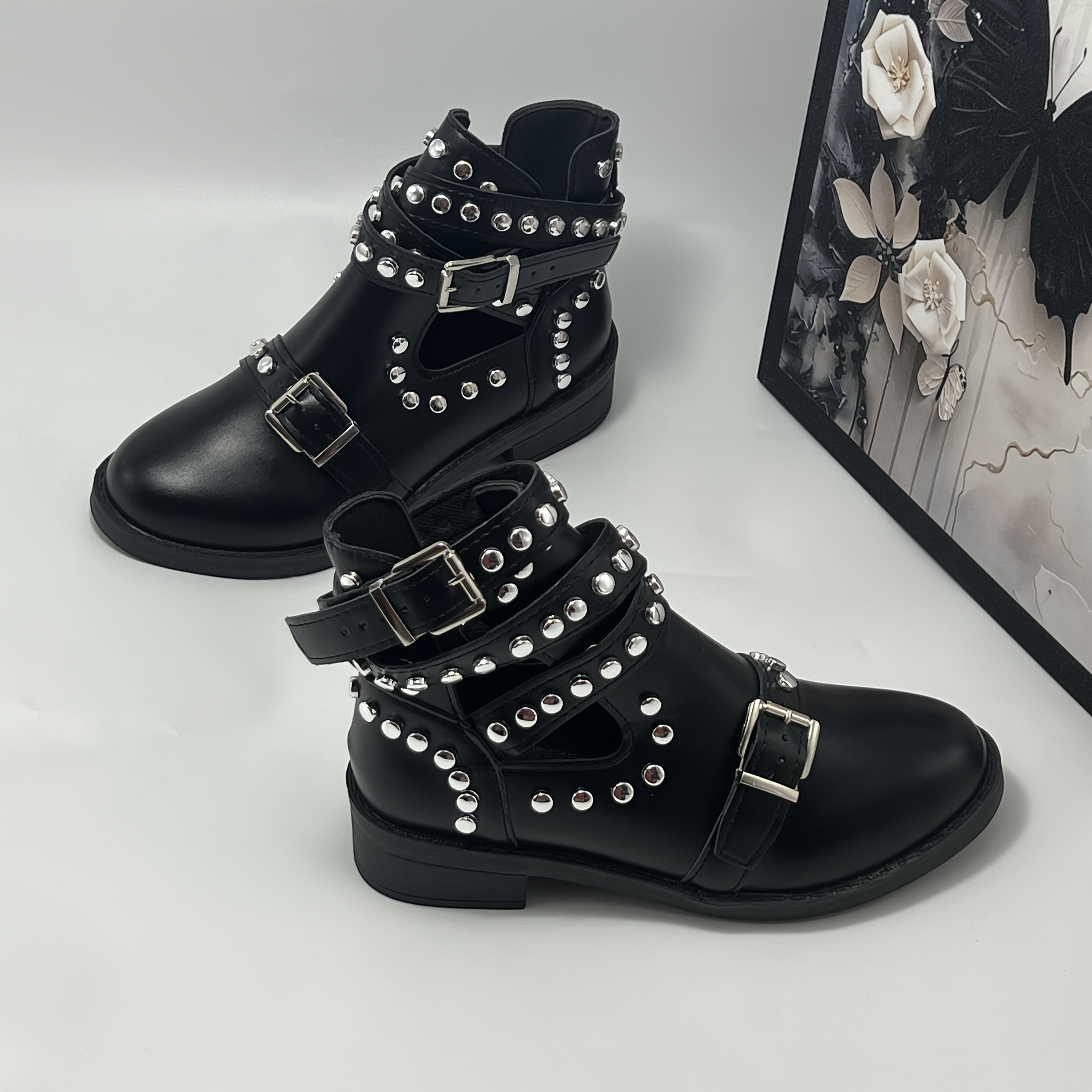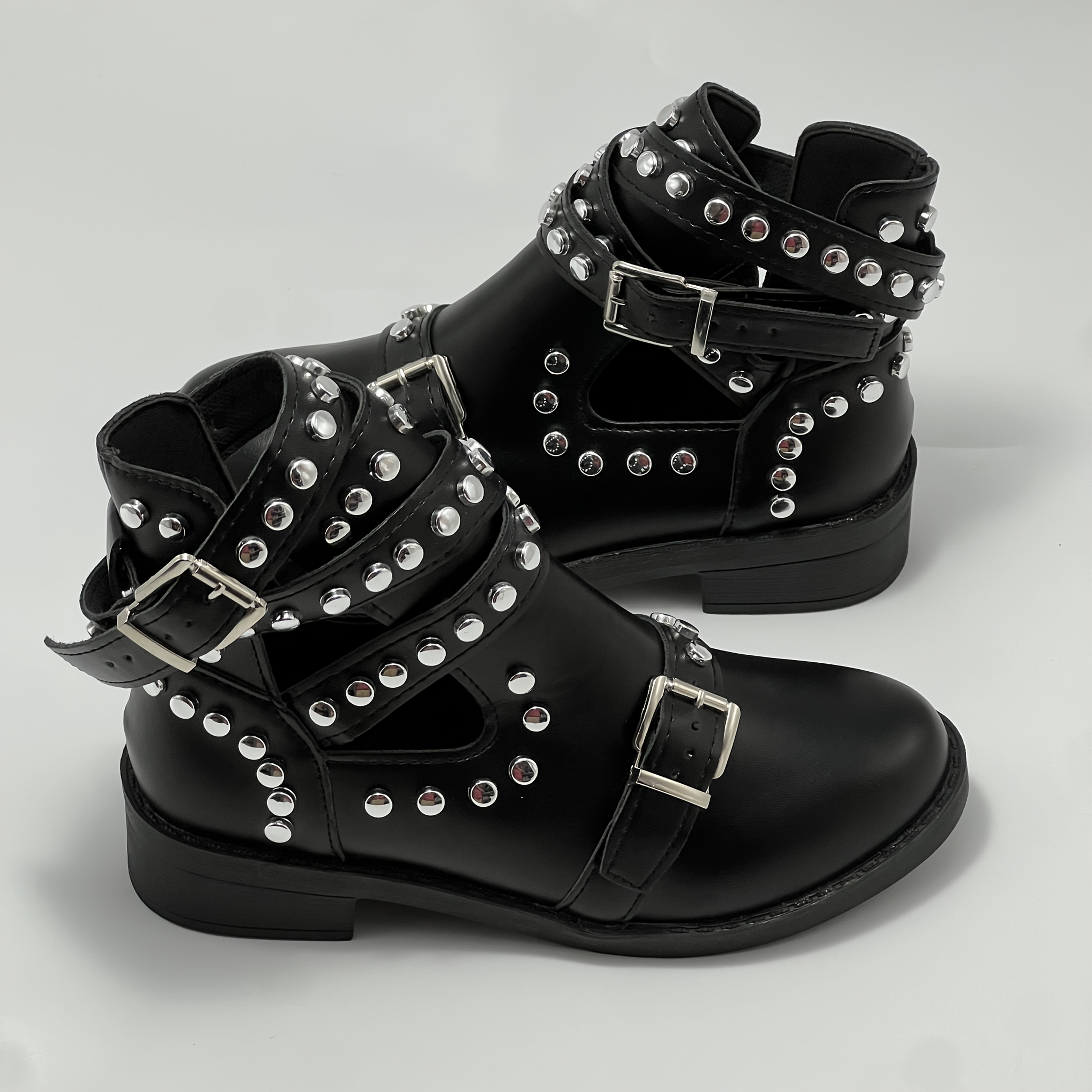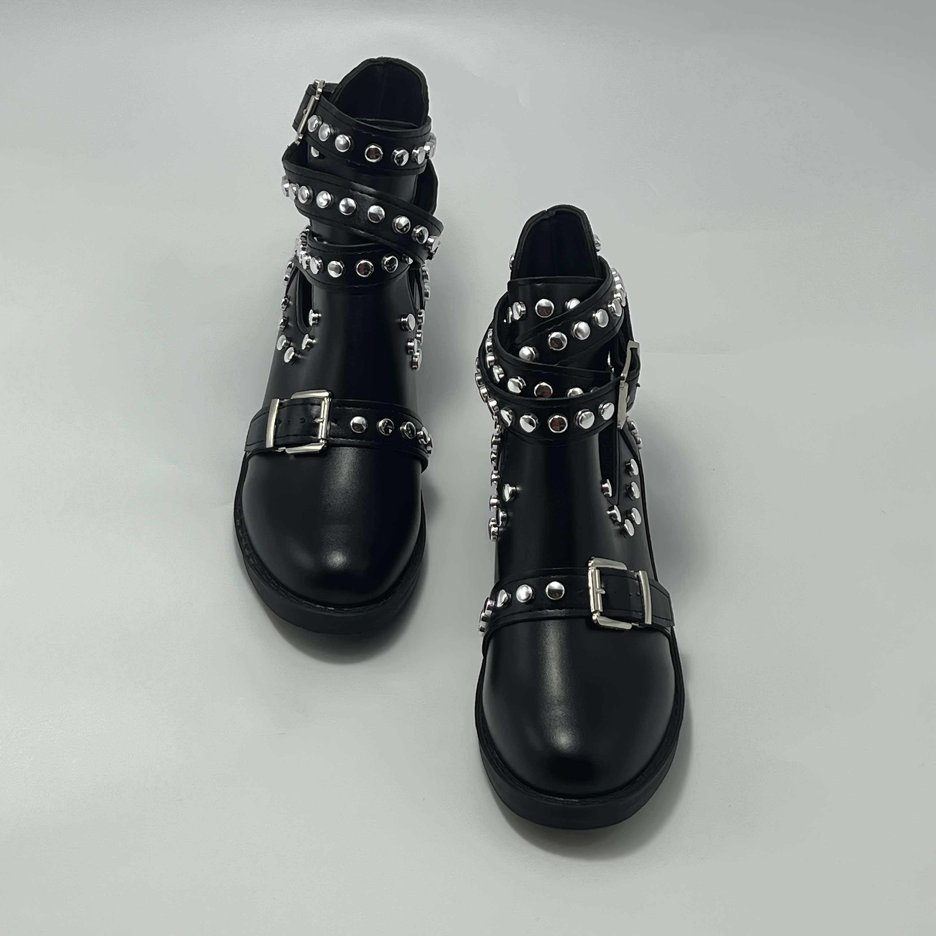 Women’S Gothic Punk Boots – Chunky platform heel, Round Toe, Synthetic Cover with Metallic-like buckles – Edgy Boots for Concerts, Parties, Everyday – Non-Slip Rubber Sole – Easy to Clean – Summer Footwear for Women, Party Footwear, Metallic Eyelets, Fabric Lined Interior, Concert Shoes, Durable Construction, Fashion Women, Streetwear Style, Sturdy Construction, Alternative Fashion, Funk boot, Platform Heel, Middle Heel, Square Toe, City boots, Gothic boots, Elegant Alternative