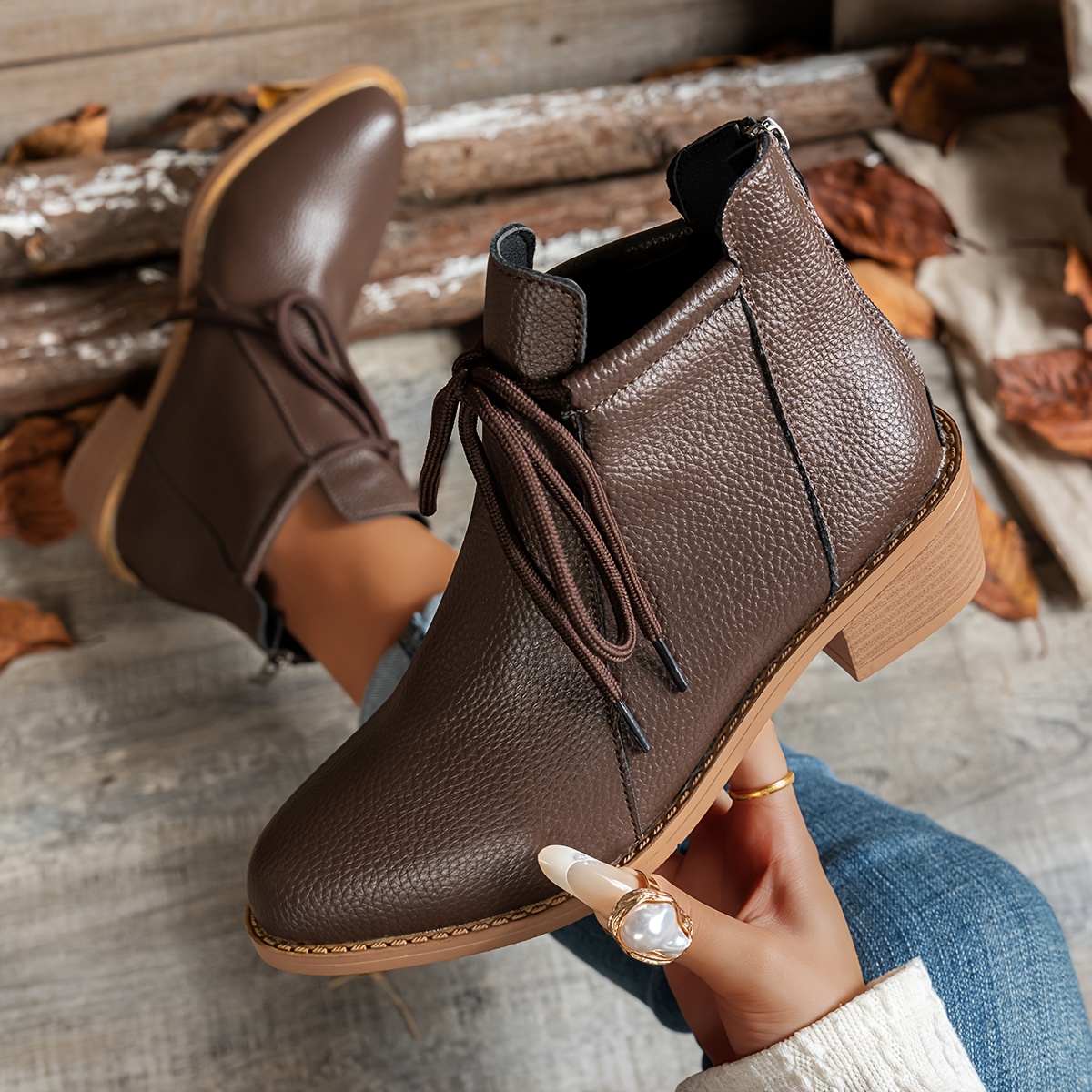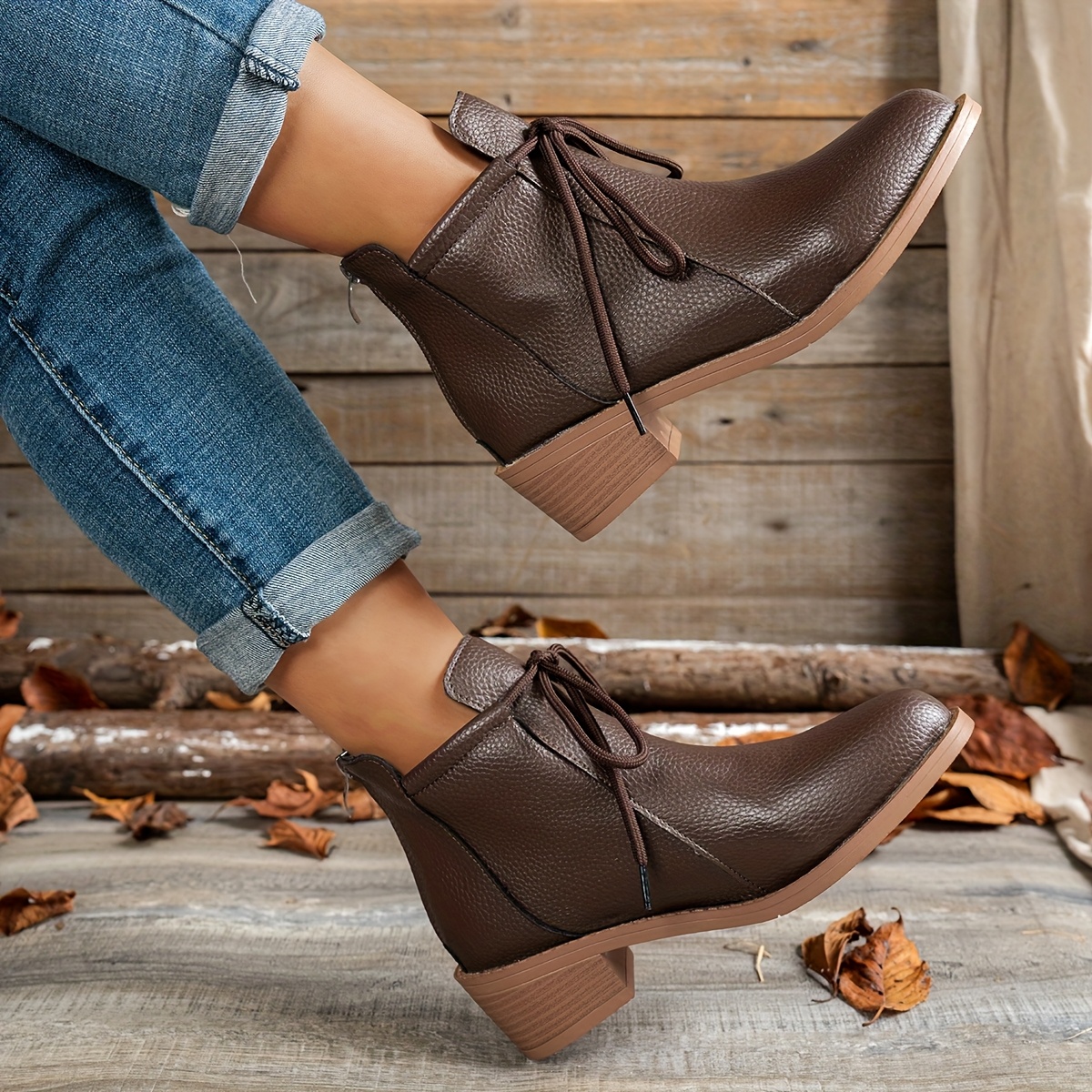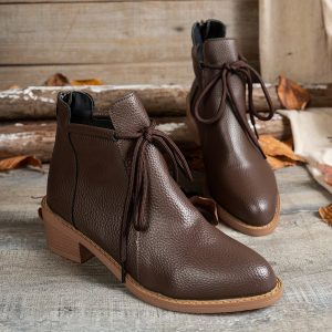 Women’S Retro Pointed Toe Ankle Boots with Back Zipper – Chunky Mid-Heel, Lace-Up Design, Black Synthetic Cover, Casual & Versatile Style for All Seasons, Allseason Footwear, Durable Rubber Sole