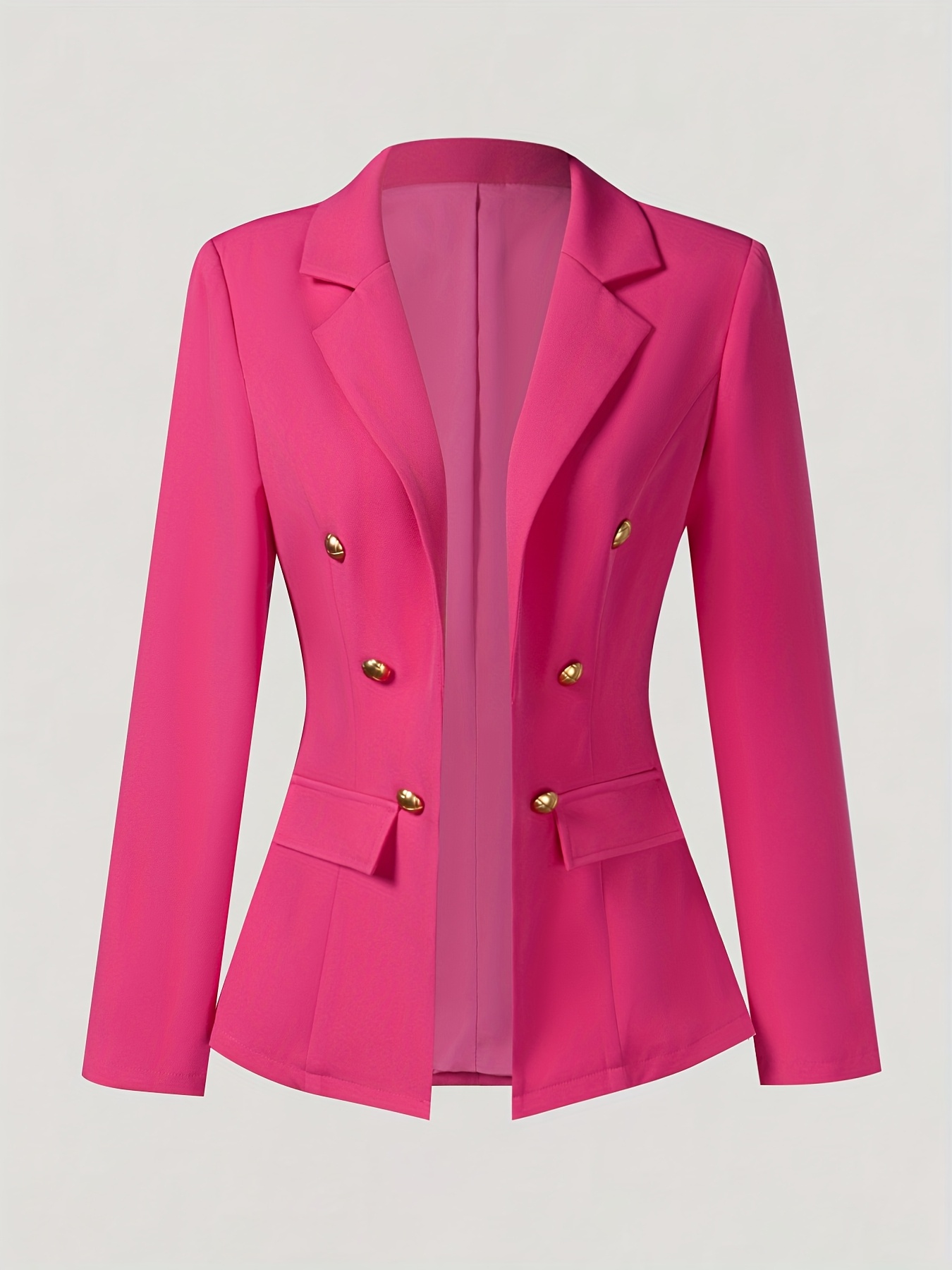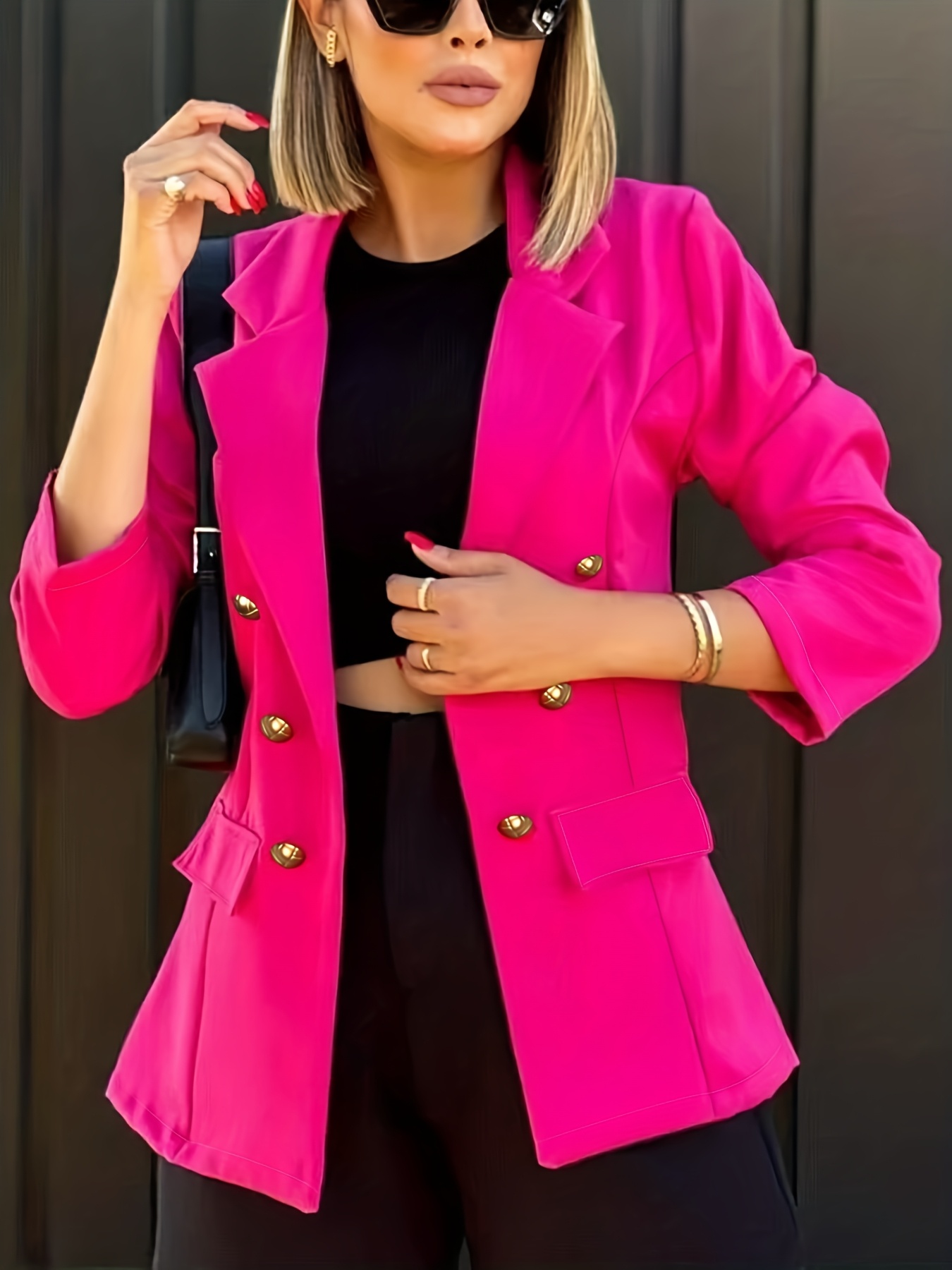 Women’S Vibrant Pink Double-Breasted Blazer – Stylish Long Sleeve, Button-Up Jacket for Fallu002FWinter, Versatile Office & Casual Wear, Regular Fit, Double-Breasted Design, Office Wear Jacket | Vibrant Blazer | Blazer